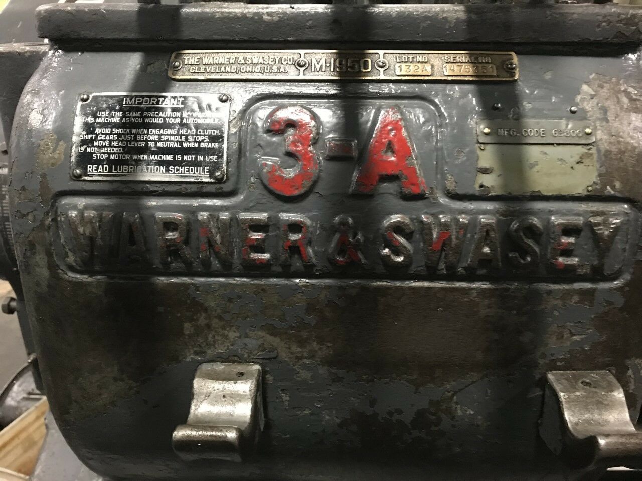>Warner & Swasey 3-A M-1950 Lever Head Saddle TypeTurret Lathe