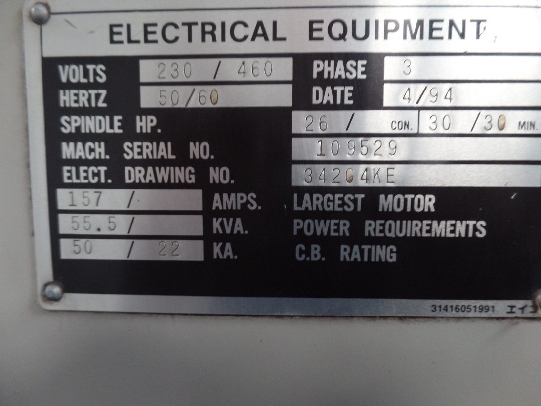 Dimensions, lathe 144” W x 75” L x 80” H