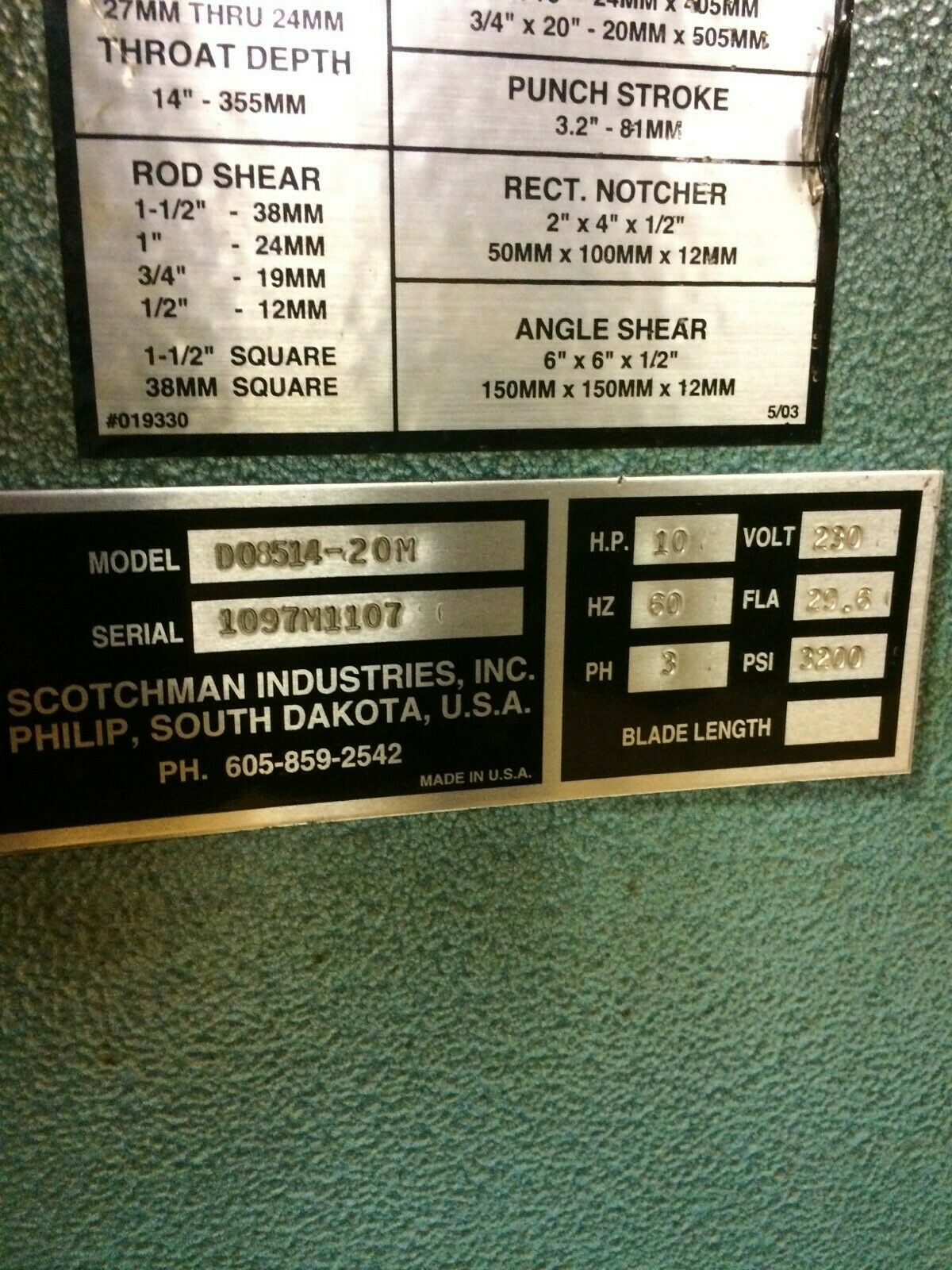 Punching Capacity: 85 Ton, 1 1/16″ in 1″
