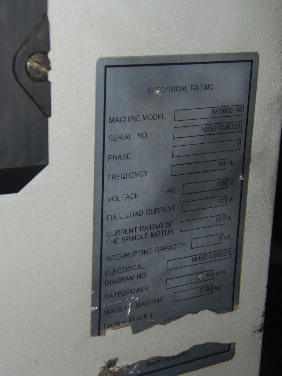 SERIAL NUMBER.................... NH501CB0221