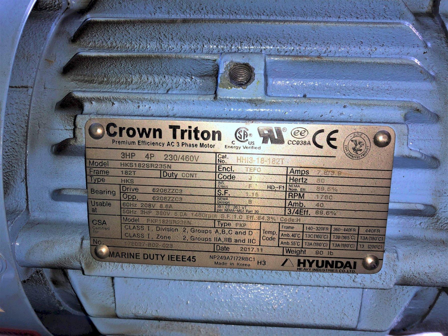 MOTOR .......................... 3 HORSEPOWER @ 1760 RPM , 2 HORSEPOWER @ 1160 RPM