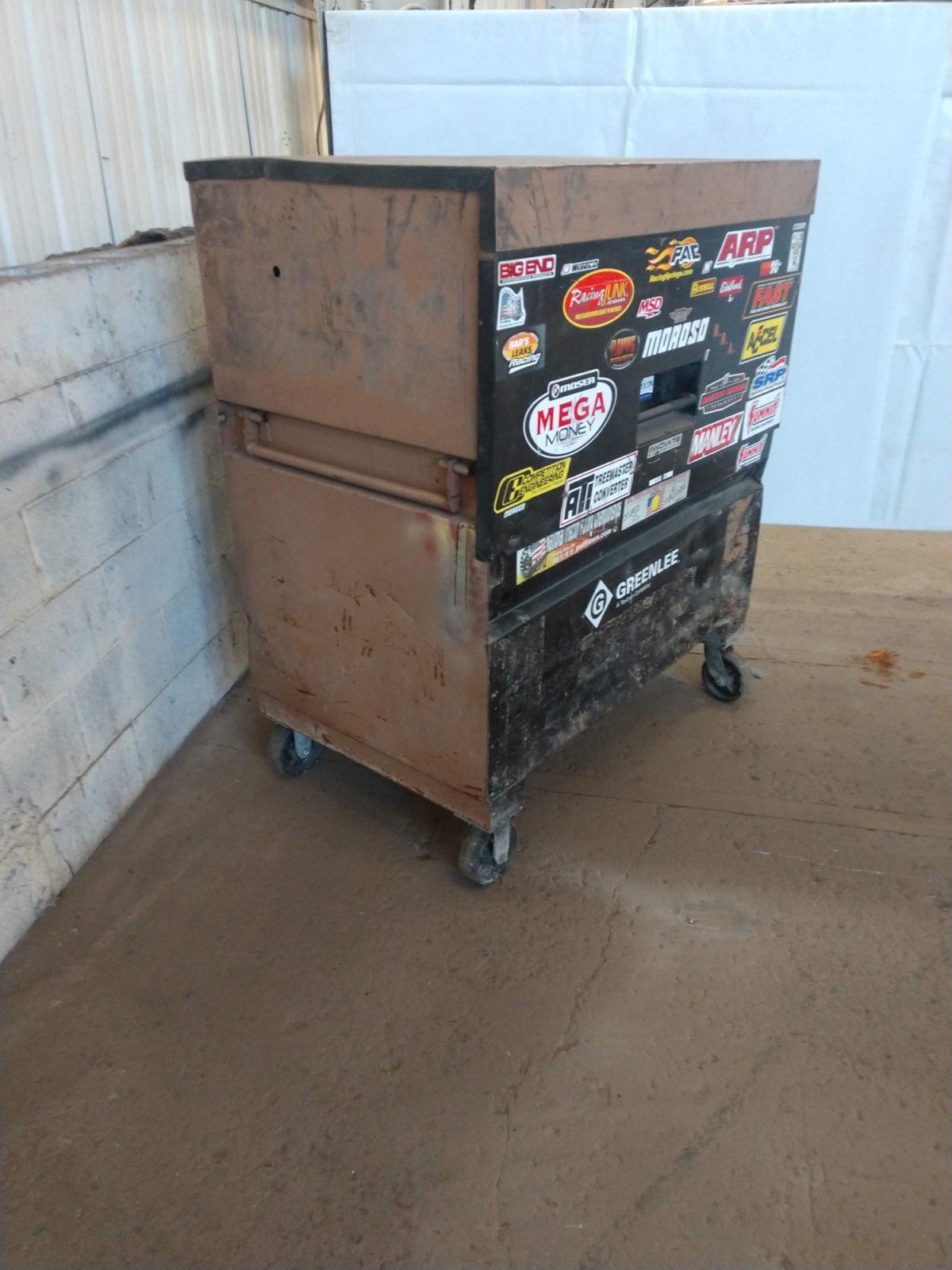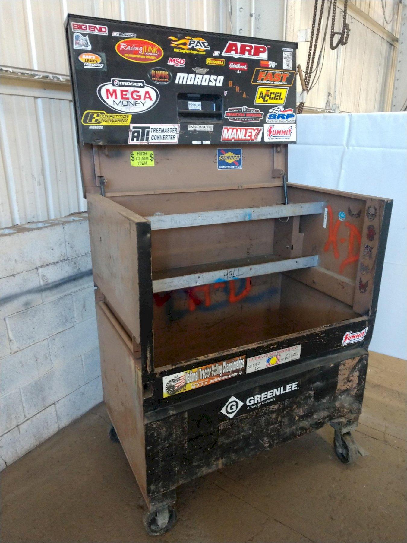 31" X 49" X 57" GREENLEE BLACK PORTABLE JOB BOX ON ROLLING CASTERS: STOCK #12390