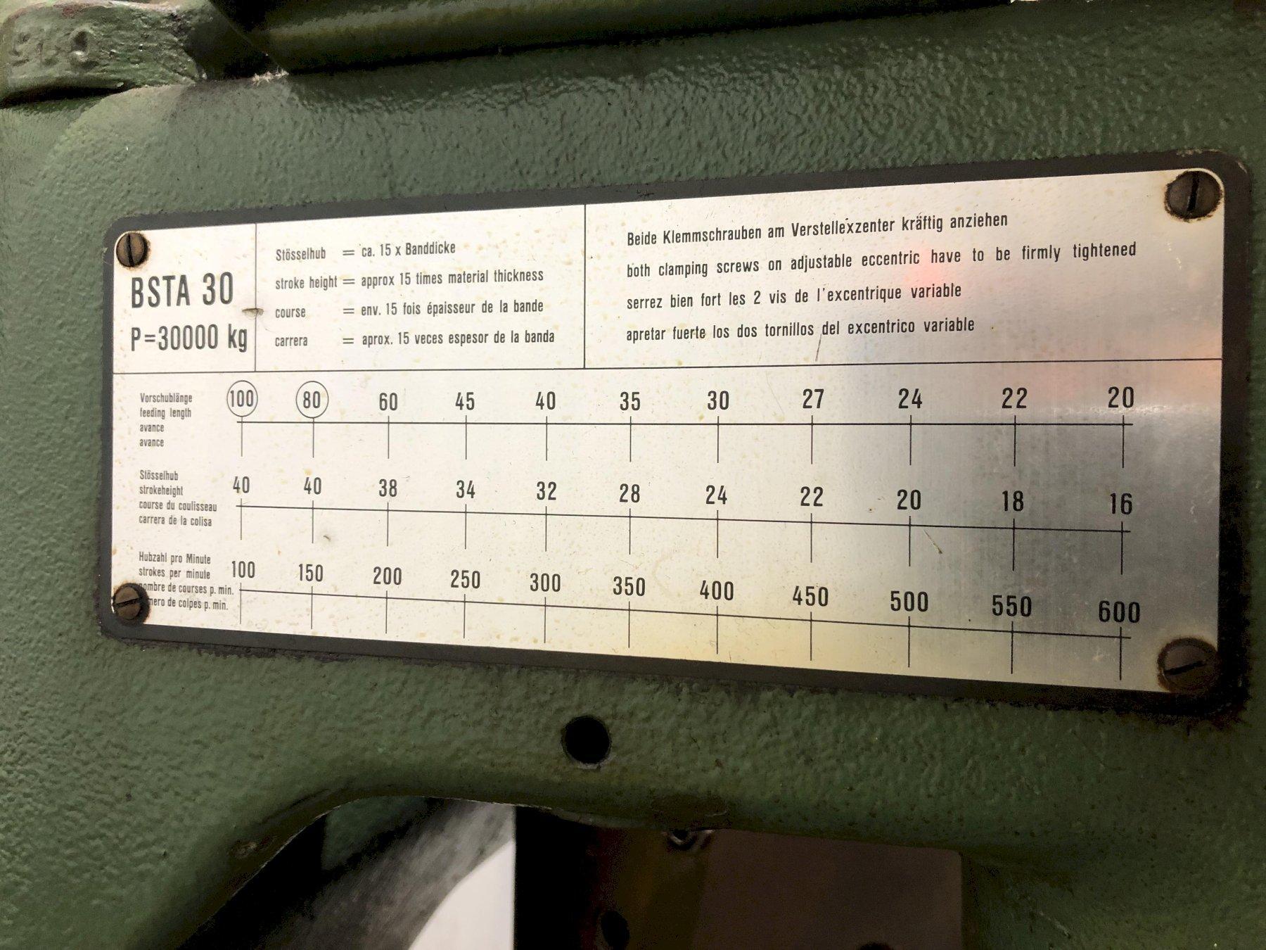 30 TON BRUDERER BSTA-30 HIGH SPEED PRESS: STOCK #12099