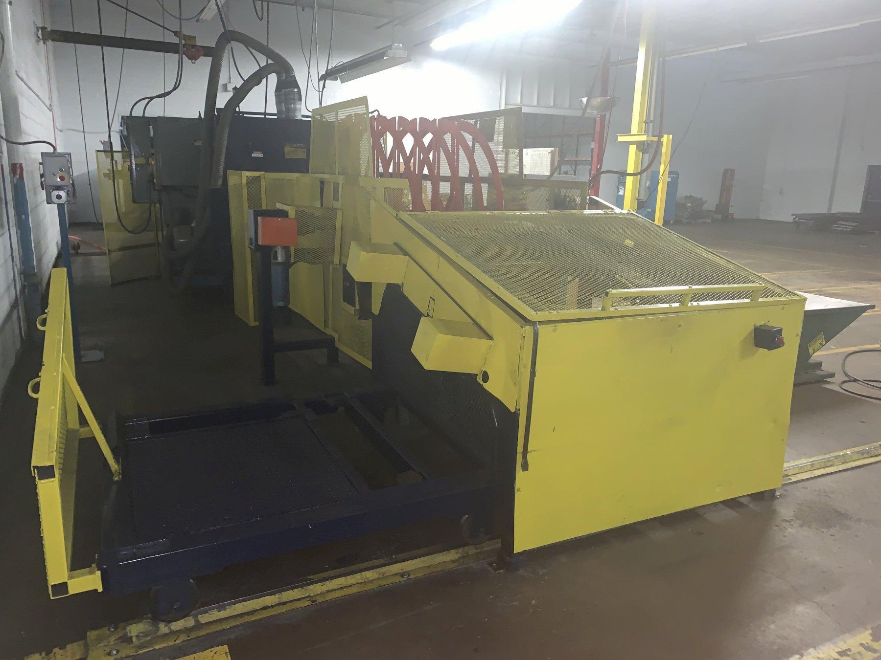 Manual pallet receiving platform, unit slides left to right so that one pallet can be removed from line while second pallet is being load