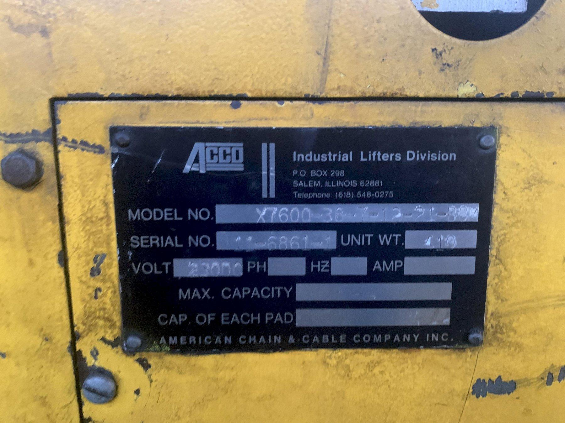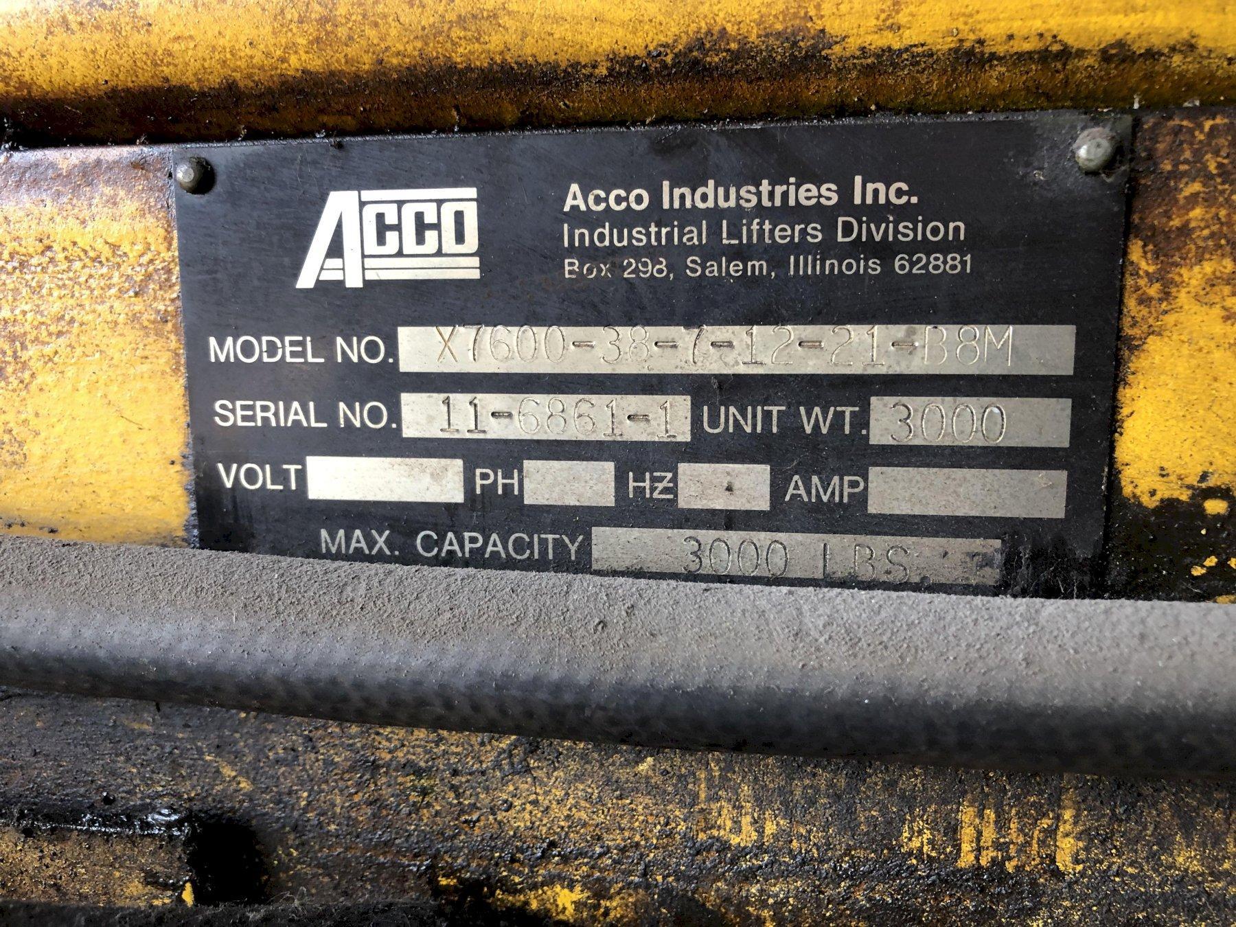 3,000 LBS ACCO MODEL #X7600-38-7-12-21-B8M VAC-O-LIFT VACUUM SHEET LIFTER: STOCK #11235