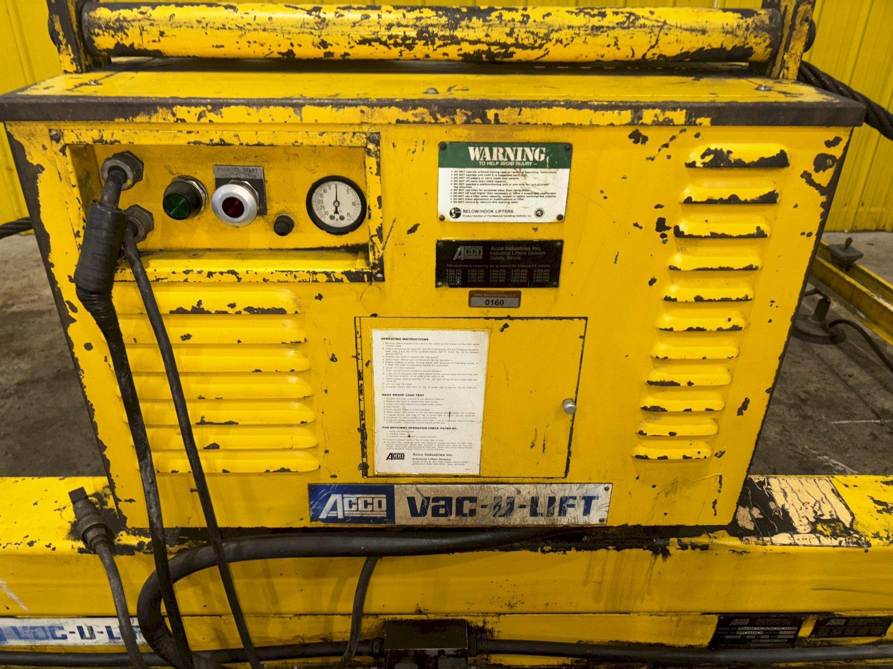 3,000 LBS ACCO MODEL #X7600-38-7-12-21-B8M VAC-O-LIFT VACUUM SHEET LIFTER: STOCK #11235