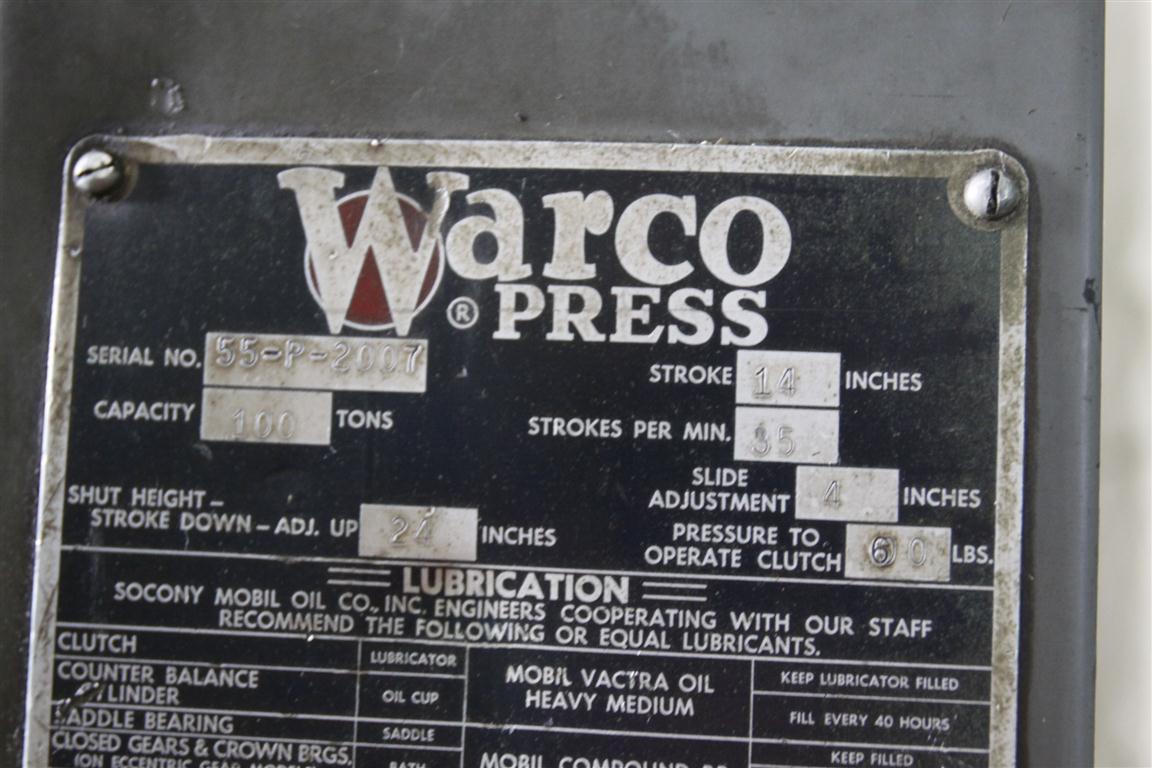 100 TON WARCO GAP FRAME PRESS: STOCK #50287