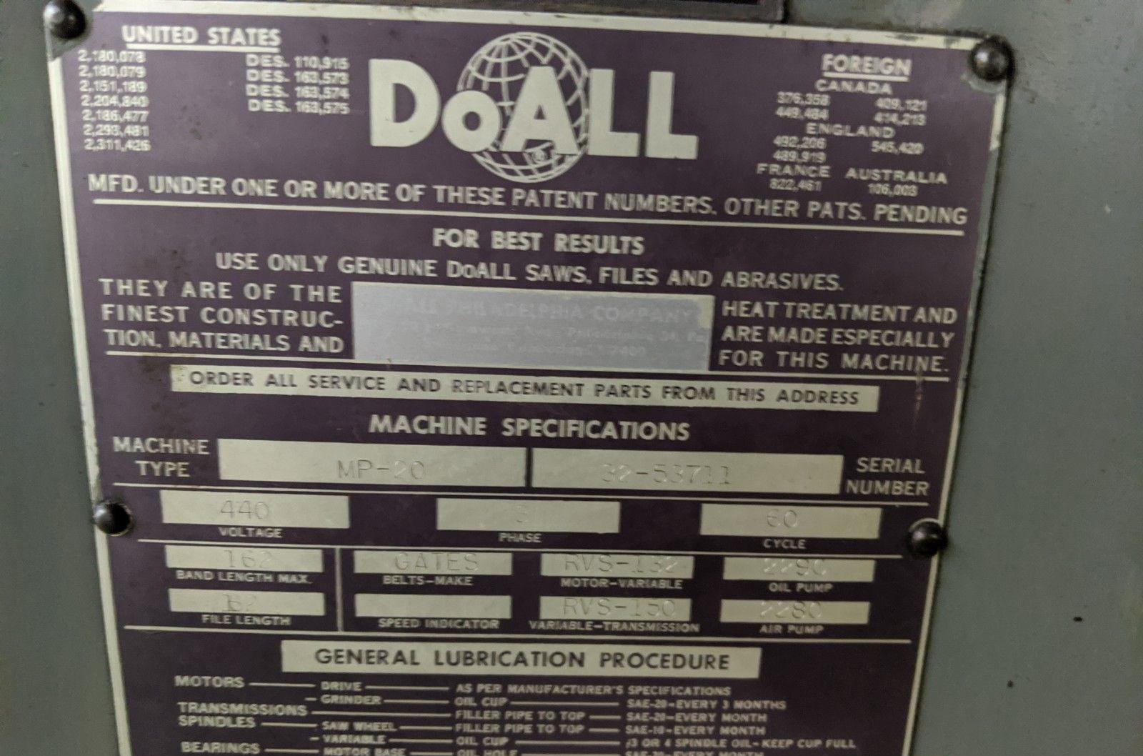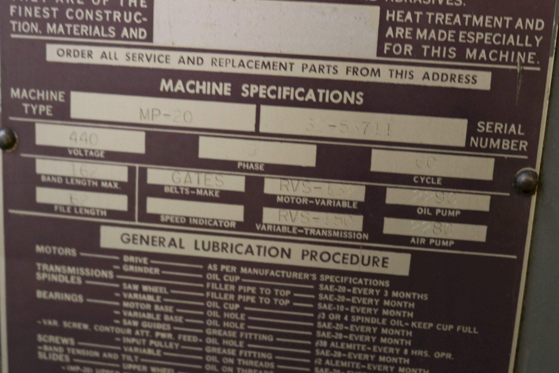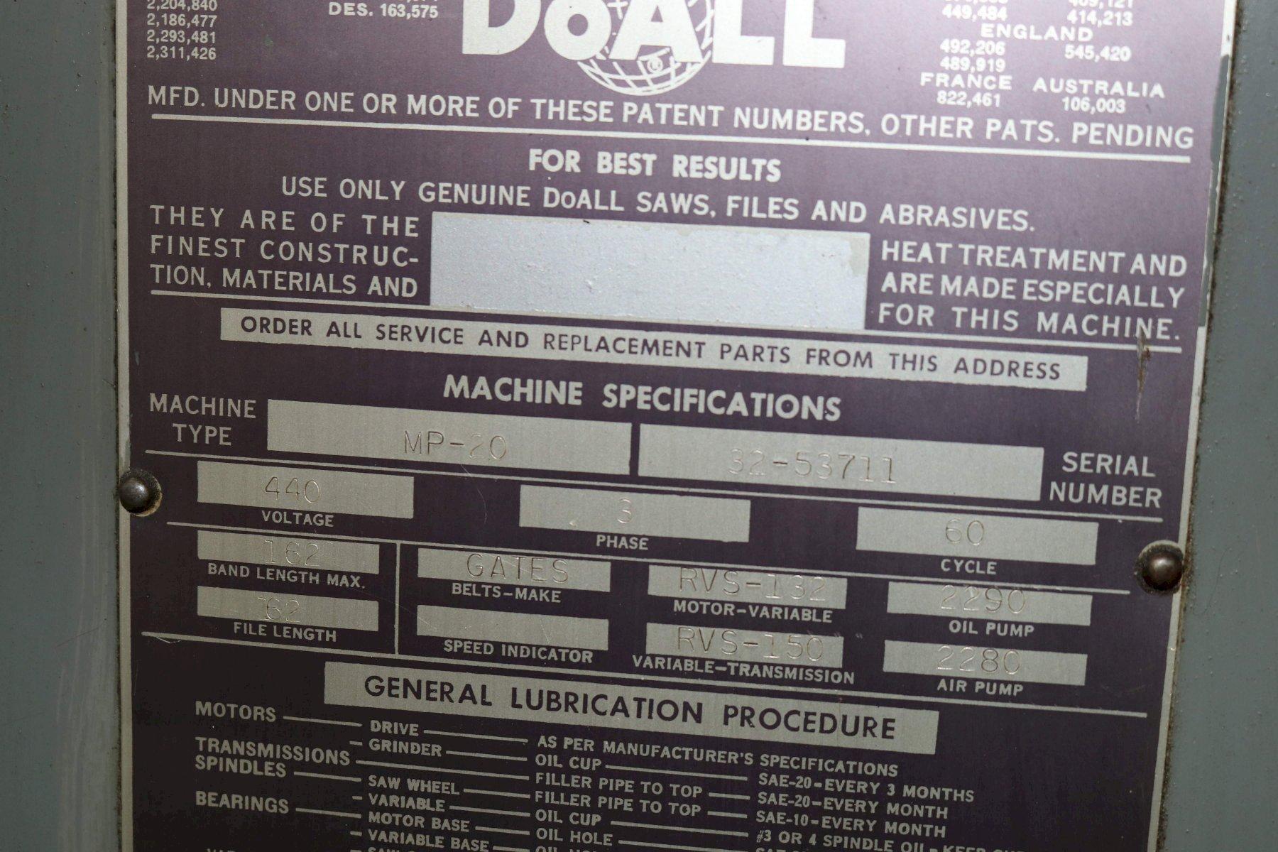 20" DOALL MODEL #MP VERTICAL BANDSAW: STOCK #72966