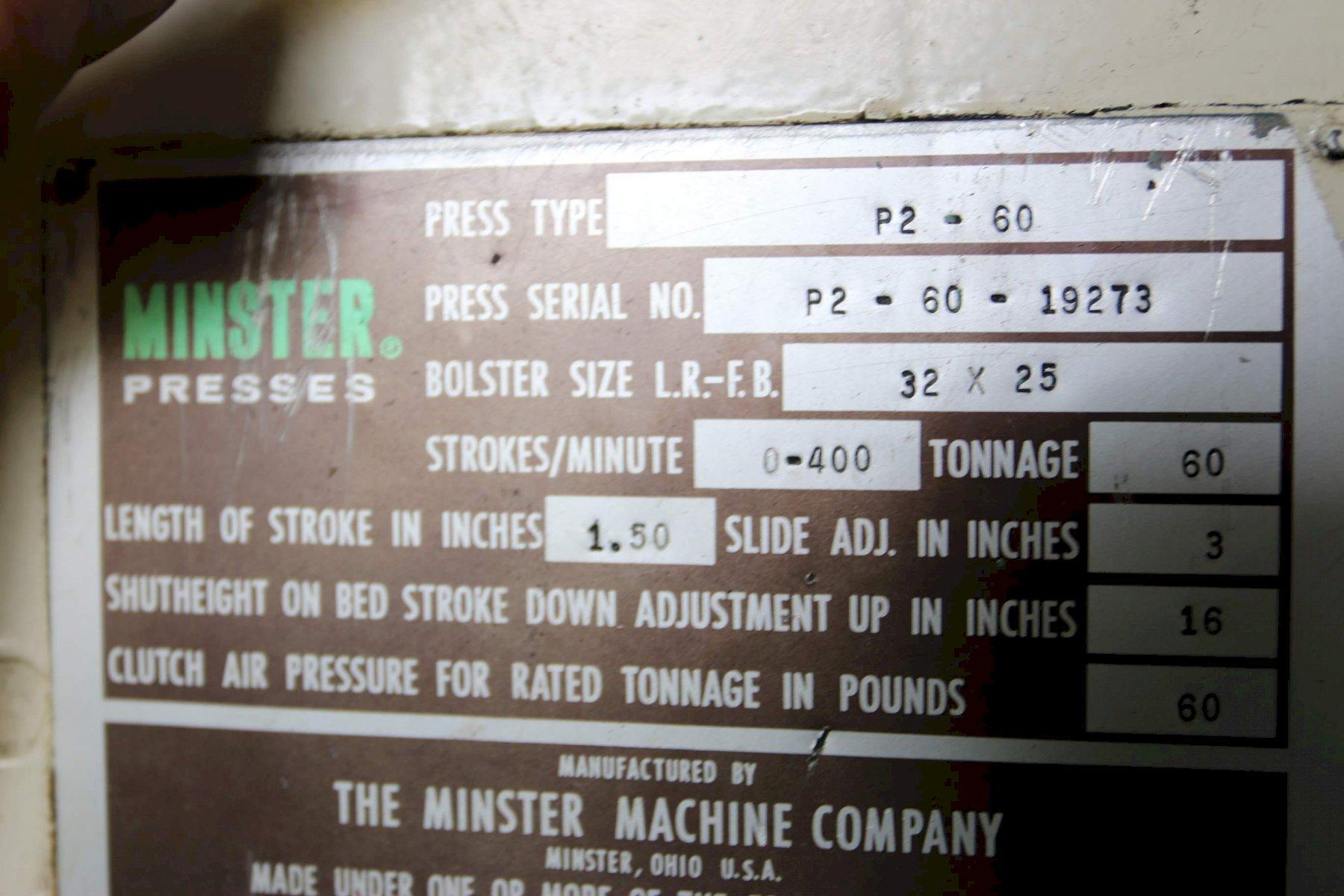 60 TON MINSTER MODEL #P2-60-32 PIECE MAKER SSDC PRESS: STOCK 68274