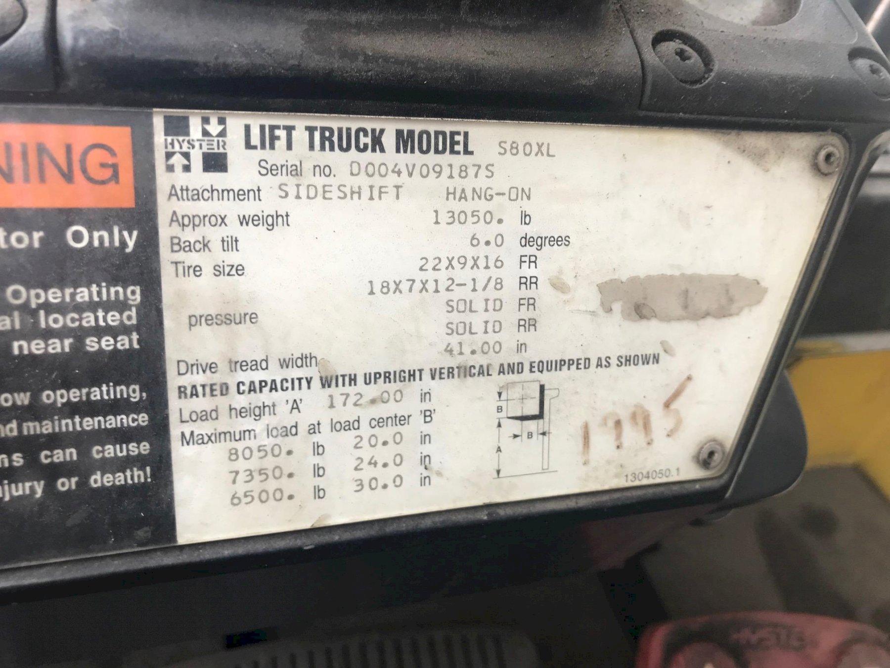 8000 LBS HYSTER PROPANE FORKLIFT: STOCK 65048
