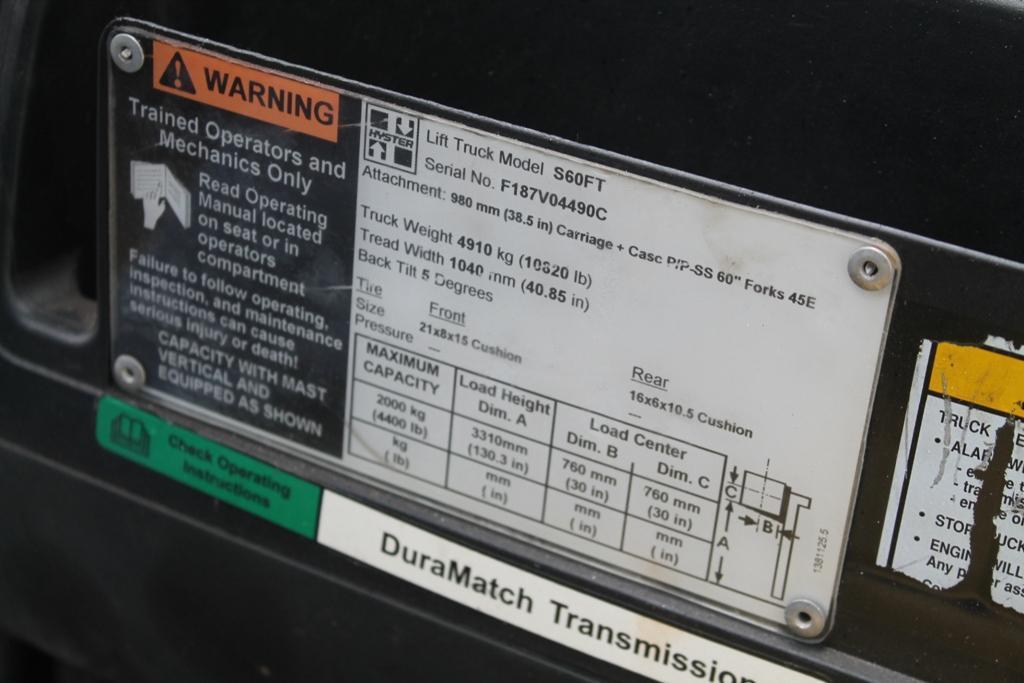 4400 LBS HYSTER LP GAS FORKLIFT: STOCK #63860