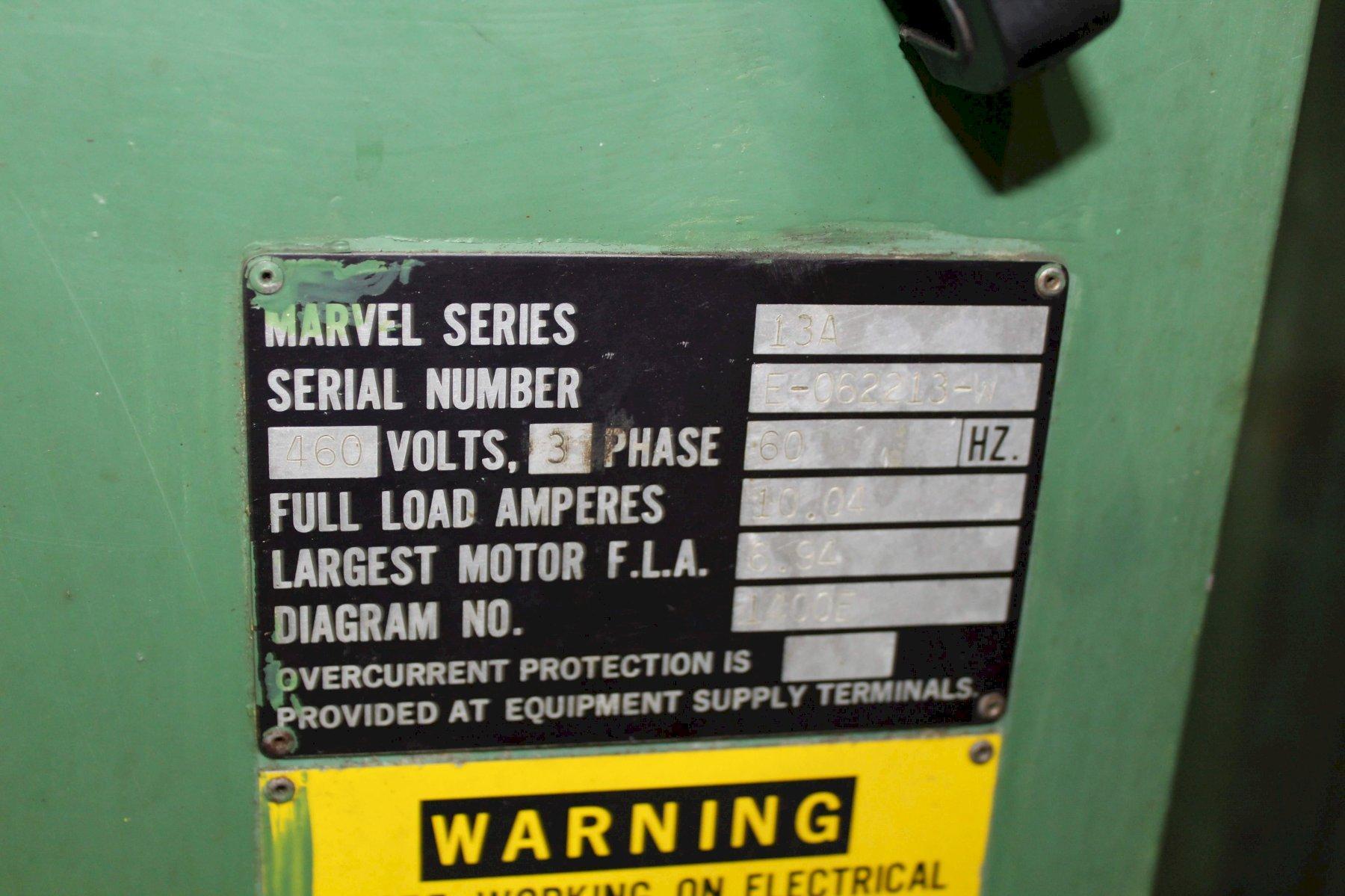 13' X 13' MARVEL MODEL #13A AUTOMATIC HORIZONTAL BANDSAW: STOCK #71723