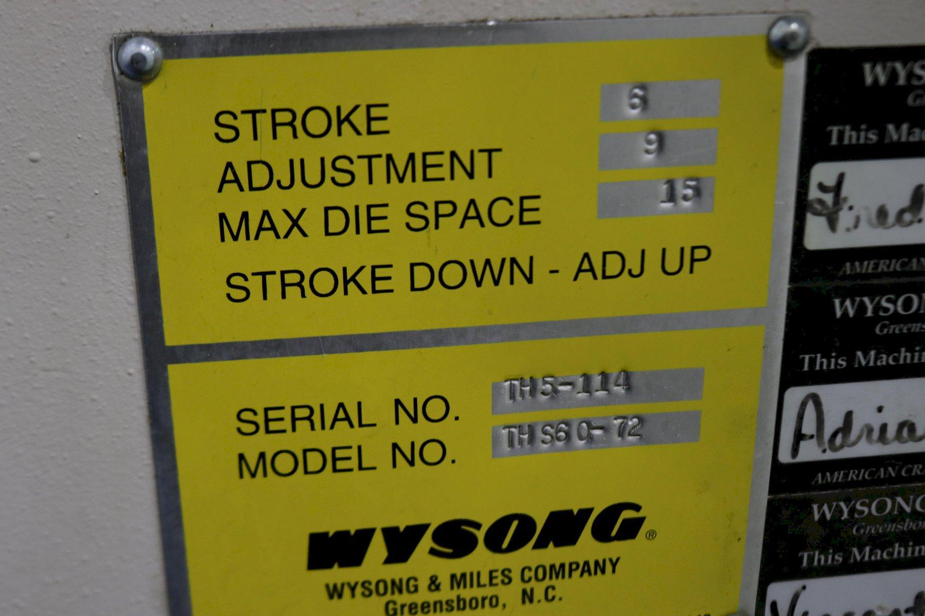 60 TON X 6' WYSONG HYDRAULIC PRESS BRAKE: STOCK #73486