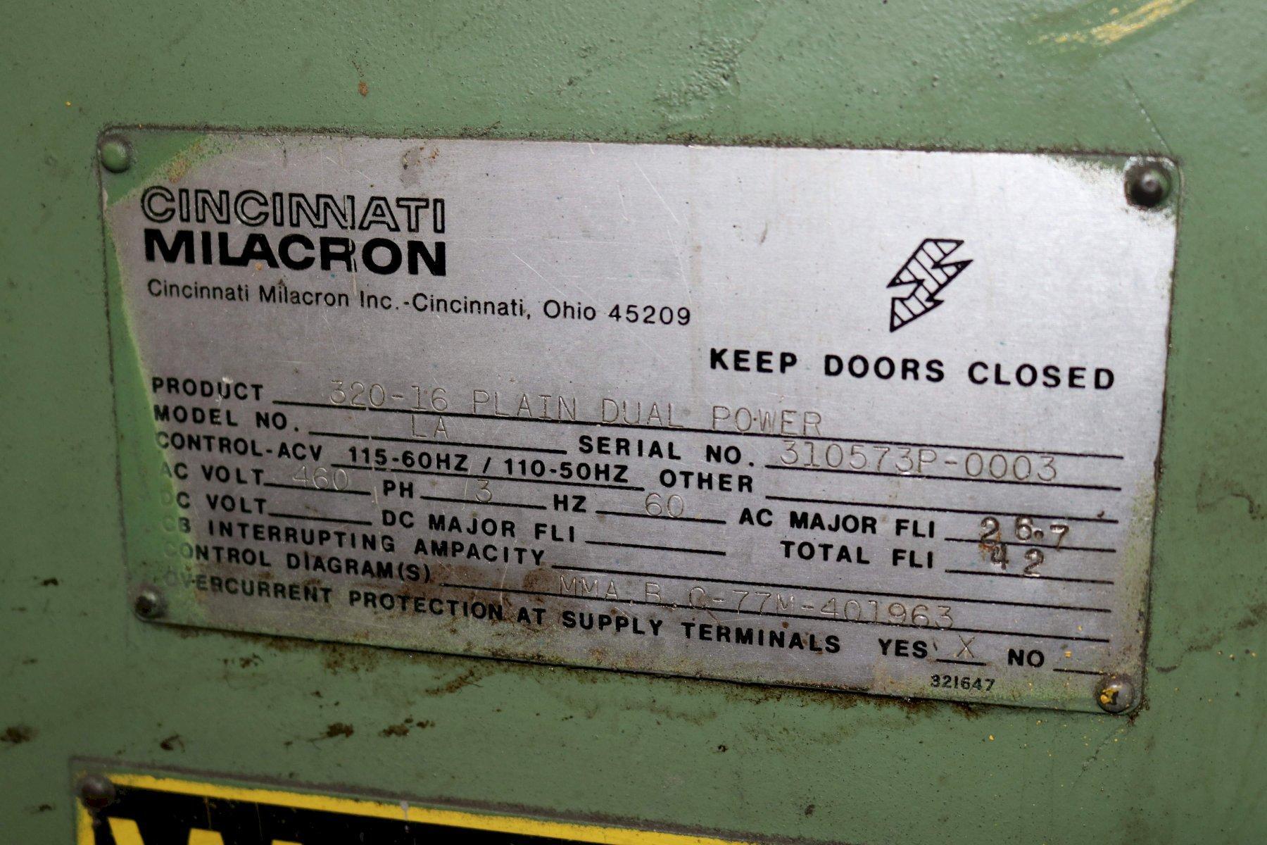 CINCINNATI MODEL 320-16 PLAIN DUAL HORIZONTAL MILL: STOCK #72877