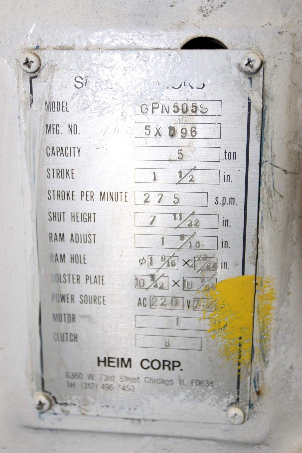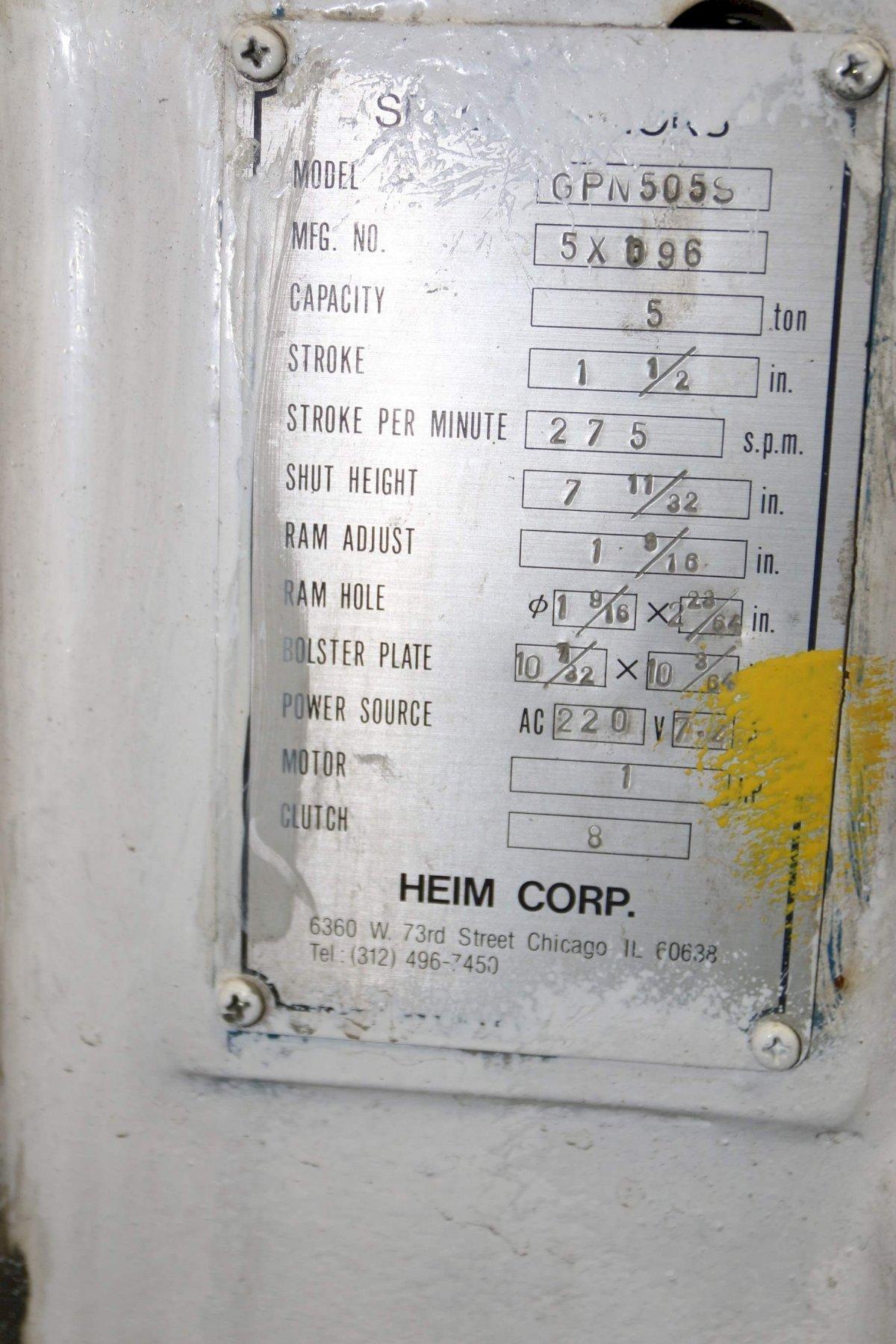 5 TON HEIM PRESS: STOCK #69026