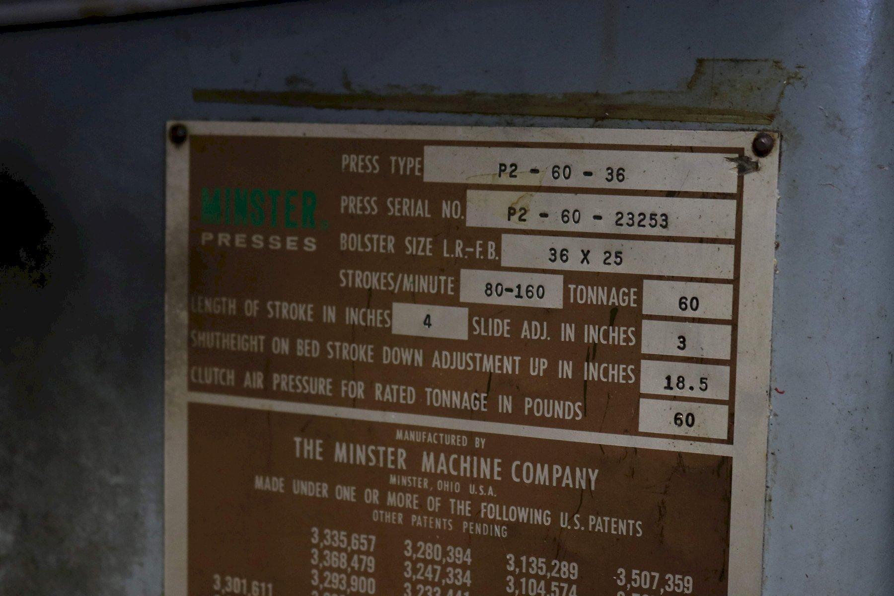 60 TON MINSTER MODEL P2-60 SSDC PRESS STOCK: 72978