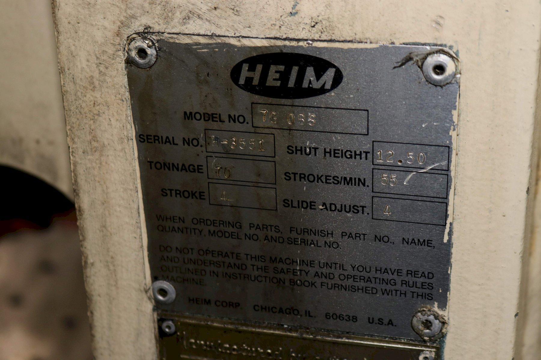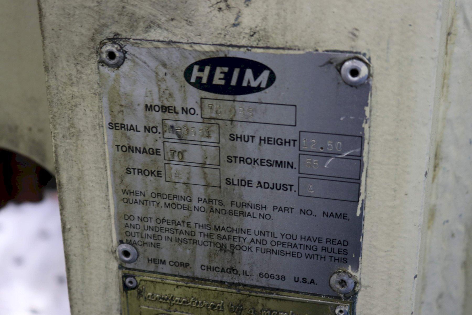 70 TON HEIM OBS BACK GEARED PRESS: STOCK #73715