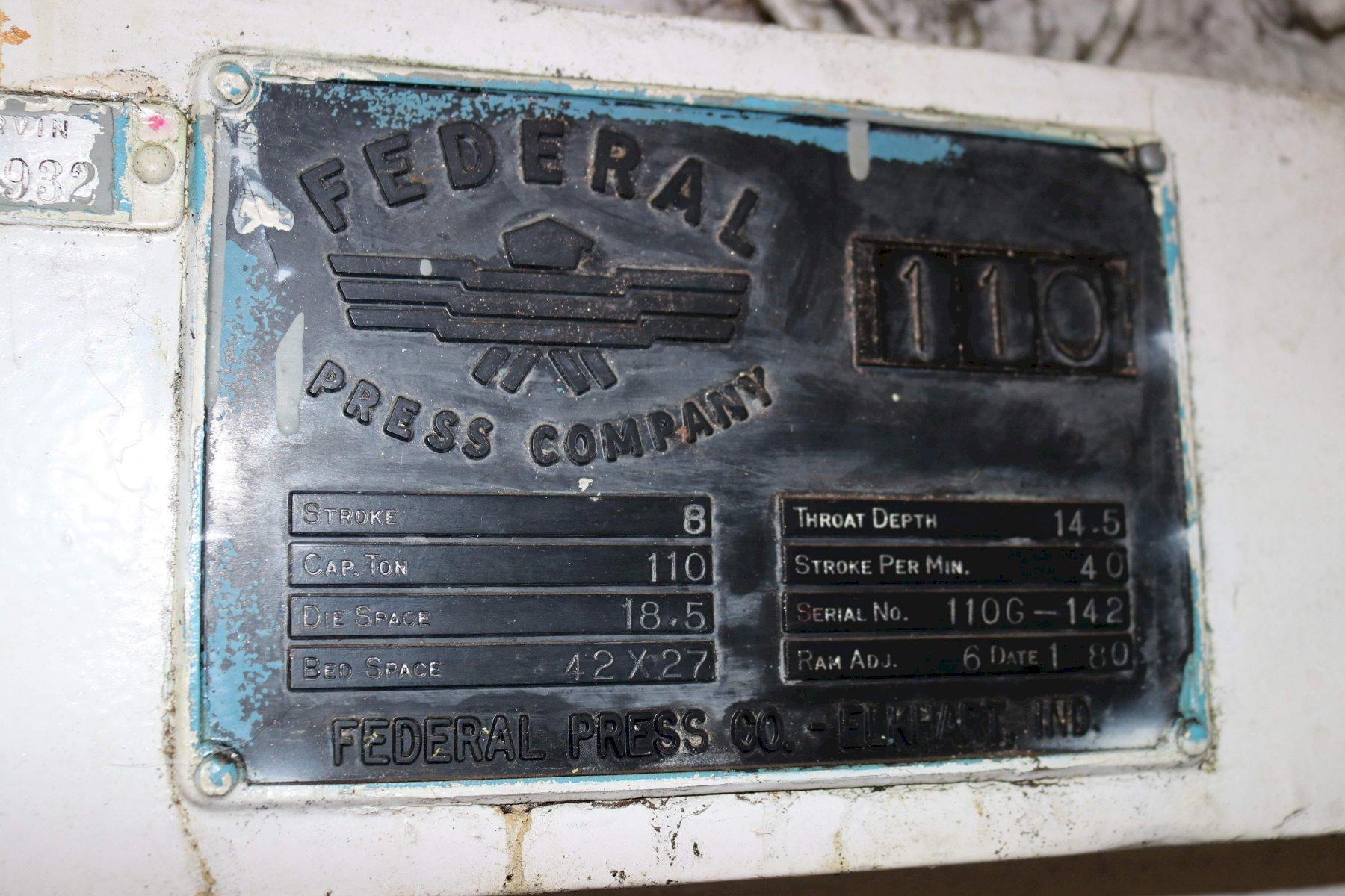 110 TON FEDERAL GAP FRAME PRESS: STOCK #72629
