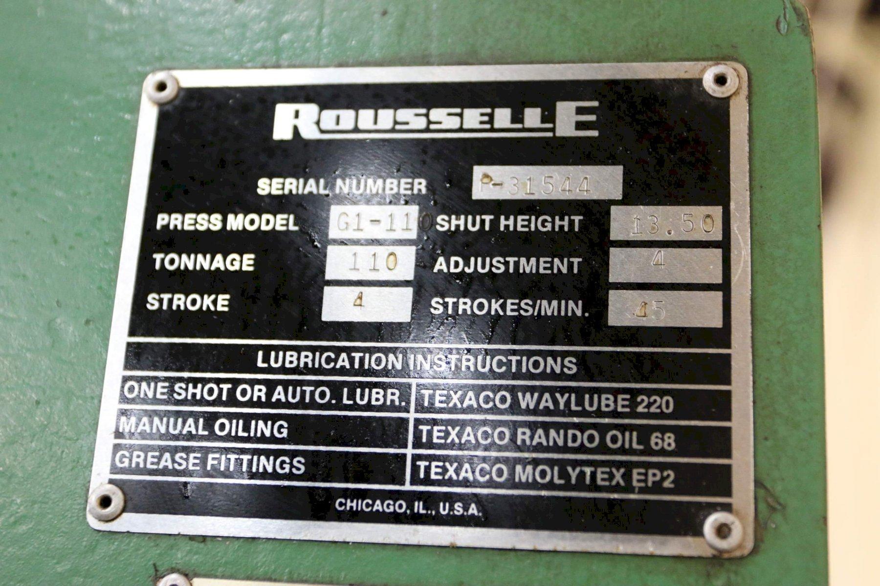 110 TON ROUSSELLE SINGLE CRANK GAP BED PRESS: STOCK #68444