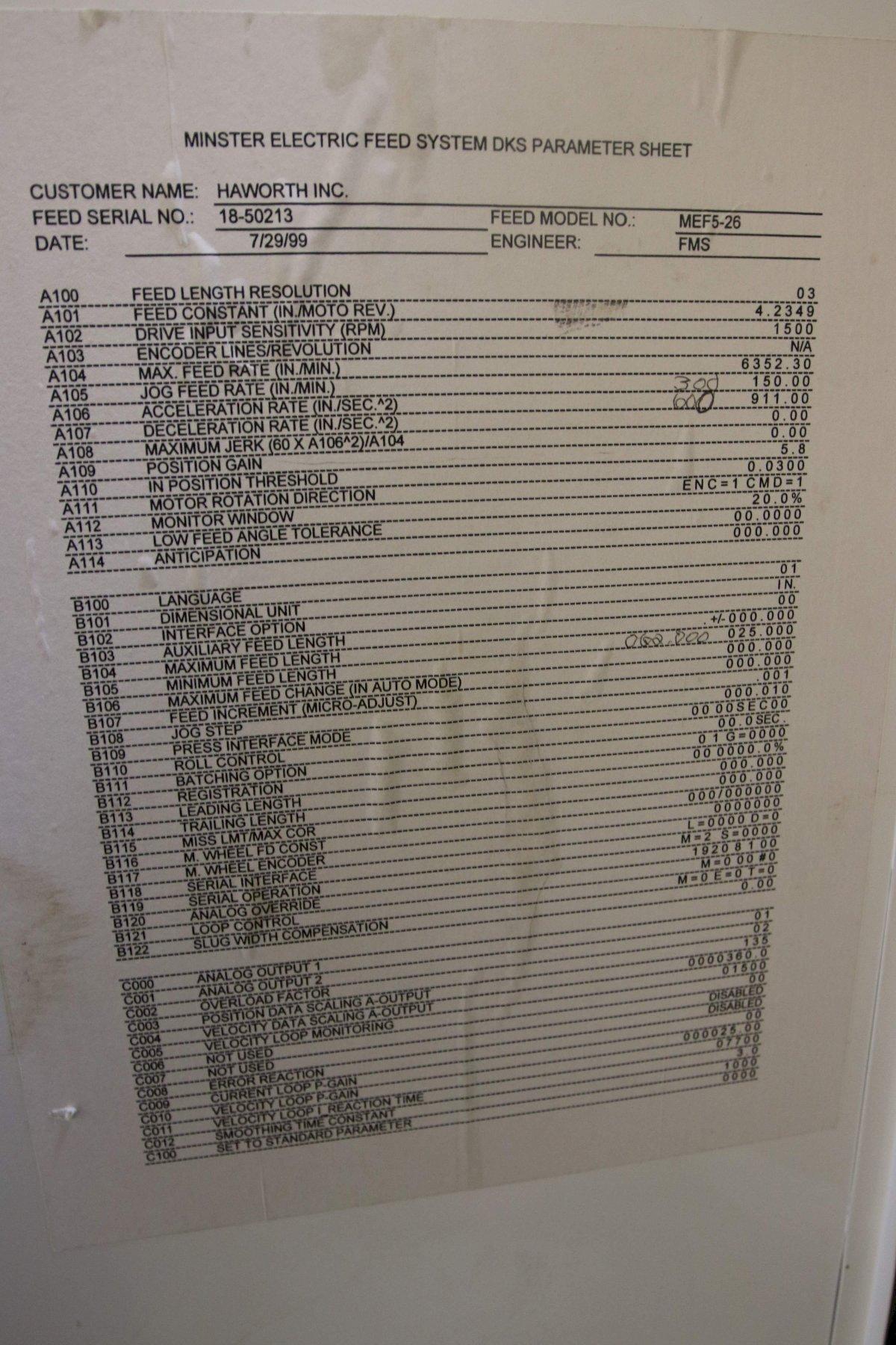 FEED LENGTH ..................... 8" @ 120 DEGREE 99 SPM