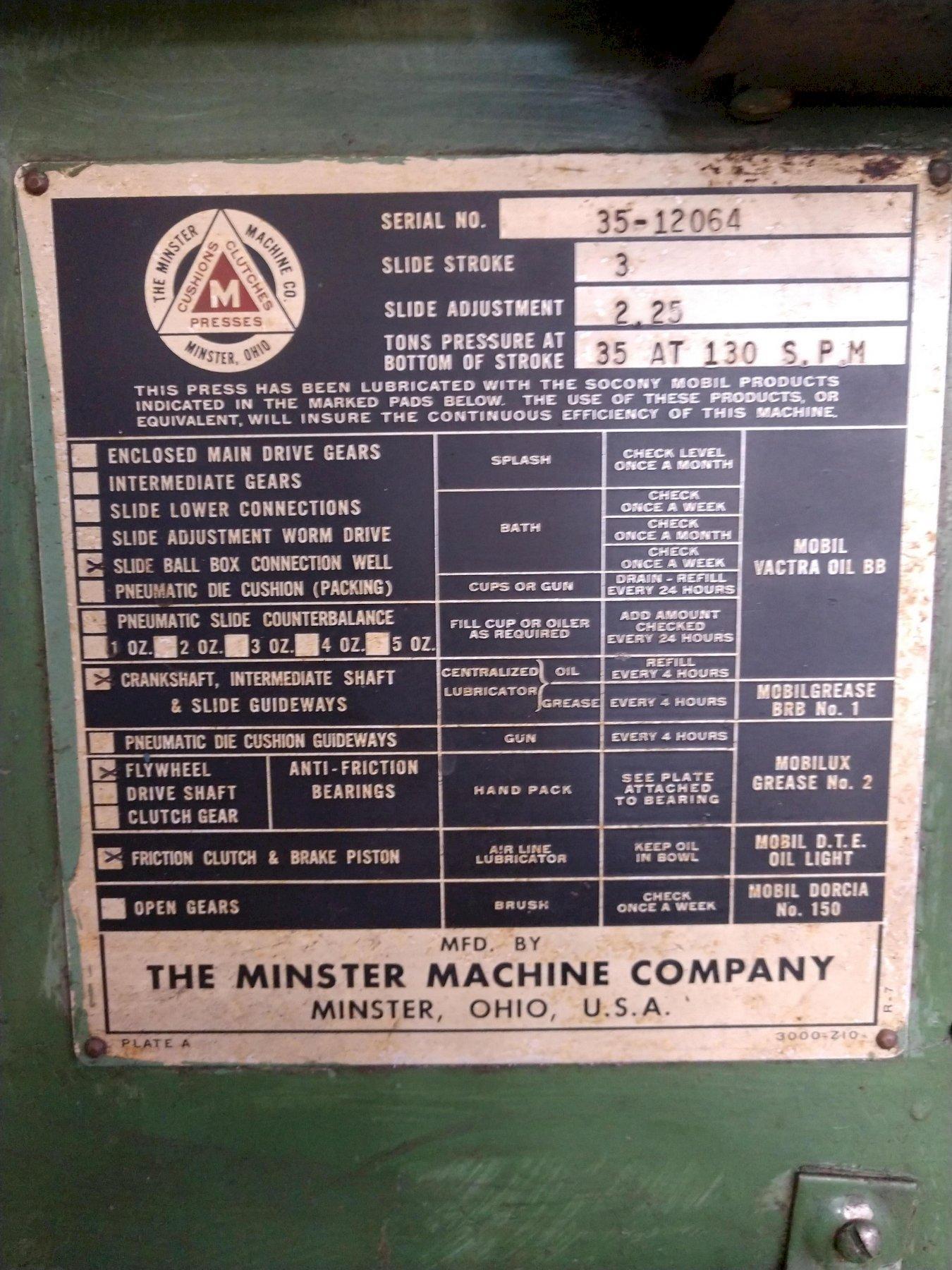 35 TON MINSTER MODEL #35 OBI PRESS, 3" STROKE: STOCK #14568