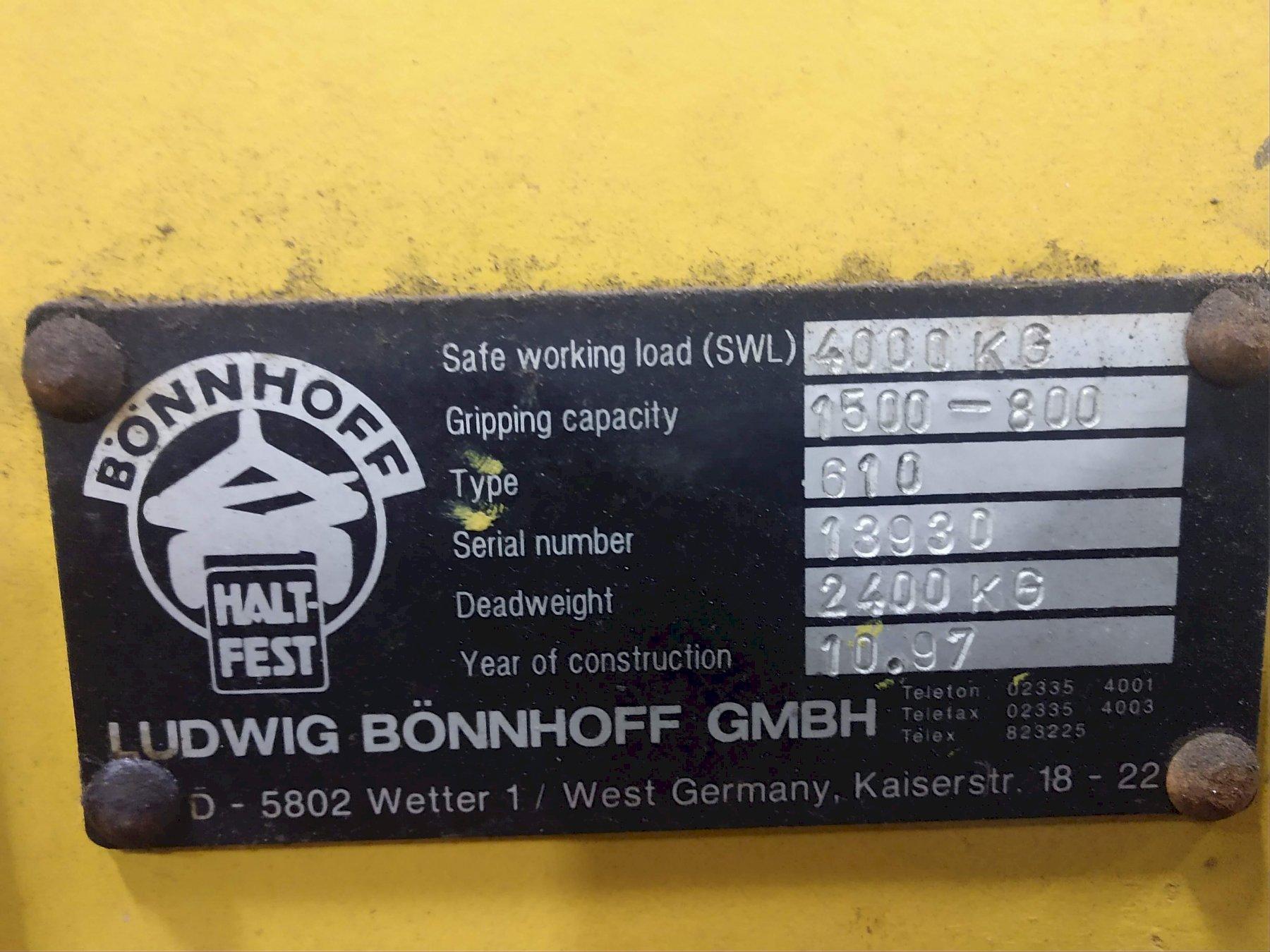 8500 LB 4.25 TON LUDWIG BONNHOFF MODEL 610 DOUBLE RIM VERTICAL COIL LIFTING TONG SCISSOR TYPE CO