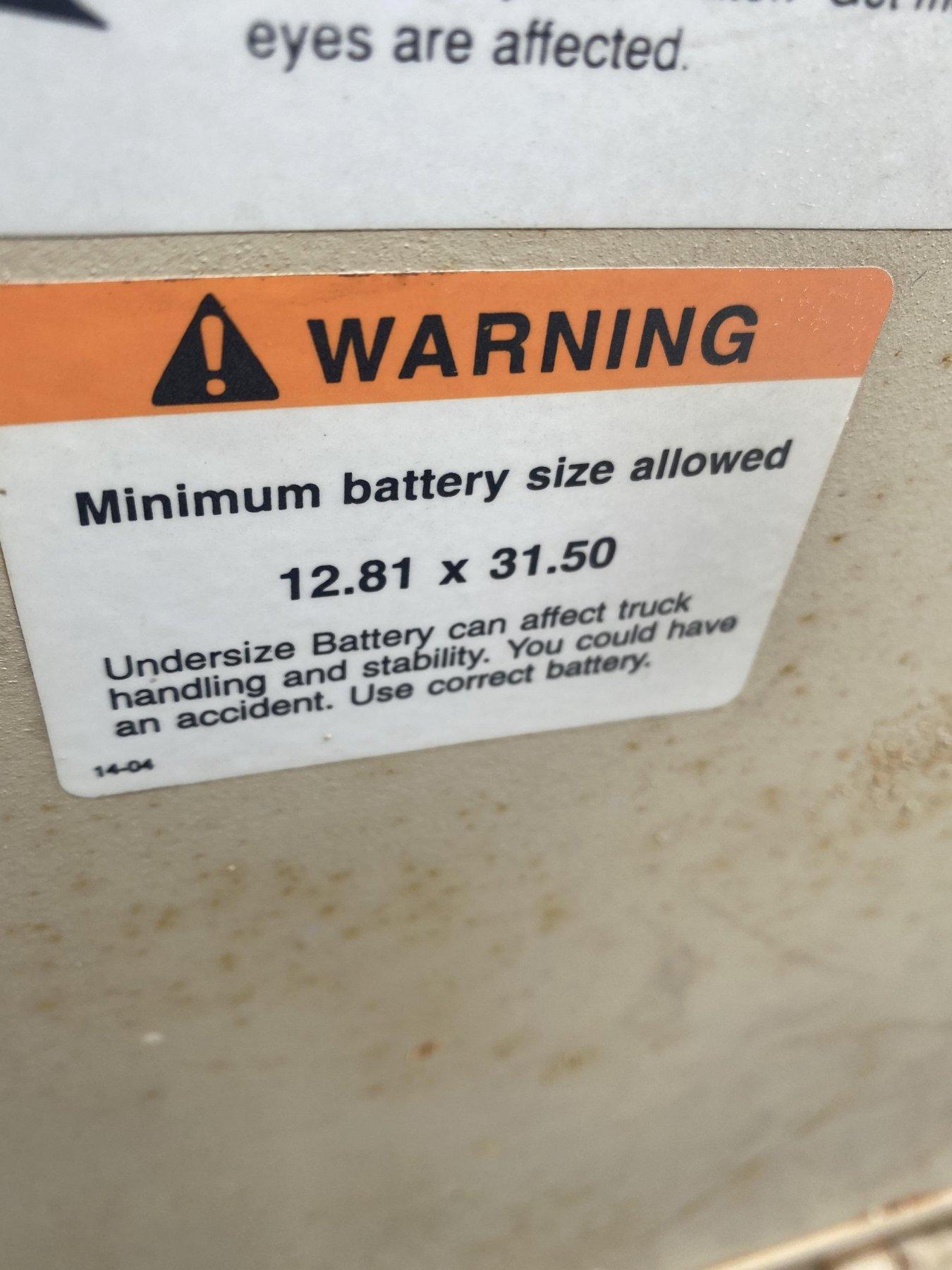 BATTERY DIMENSIONS .......... 12.81 X 31.5" MINIMUM