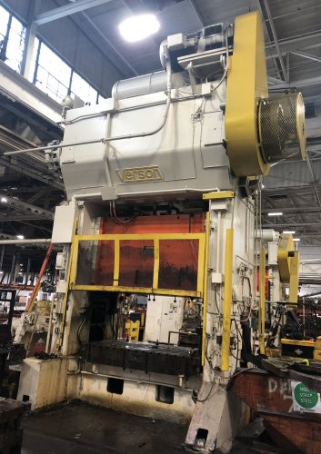 This 600-ton Verson Straight Side Mechanical Metal Stamping Press can be seen in the S&G Press Livonia Mi Warehouse for inspection.