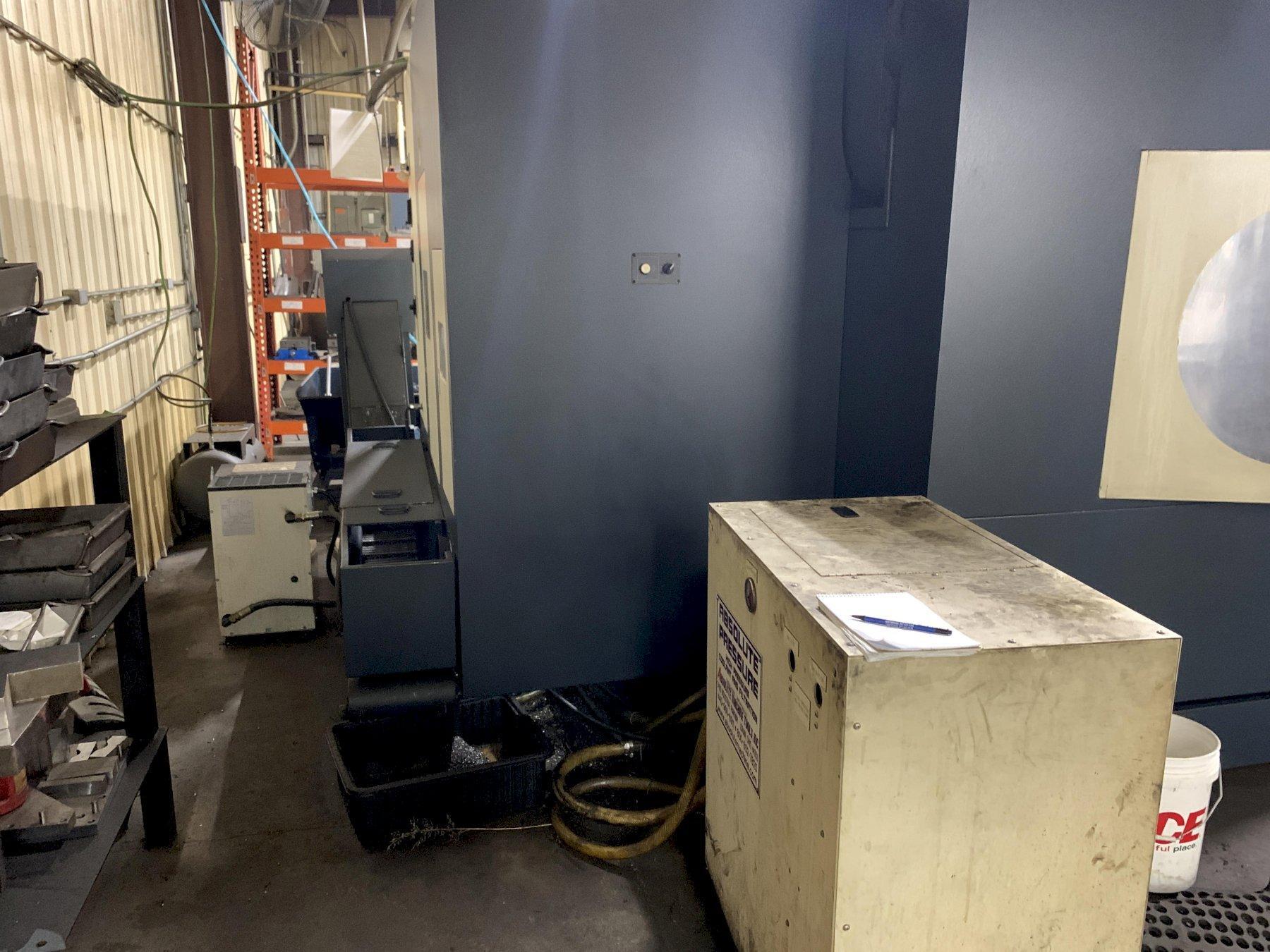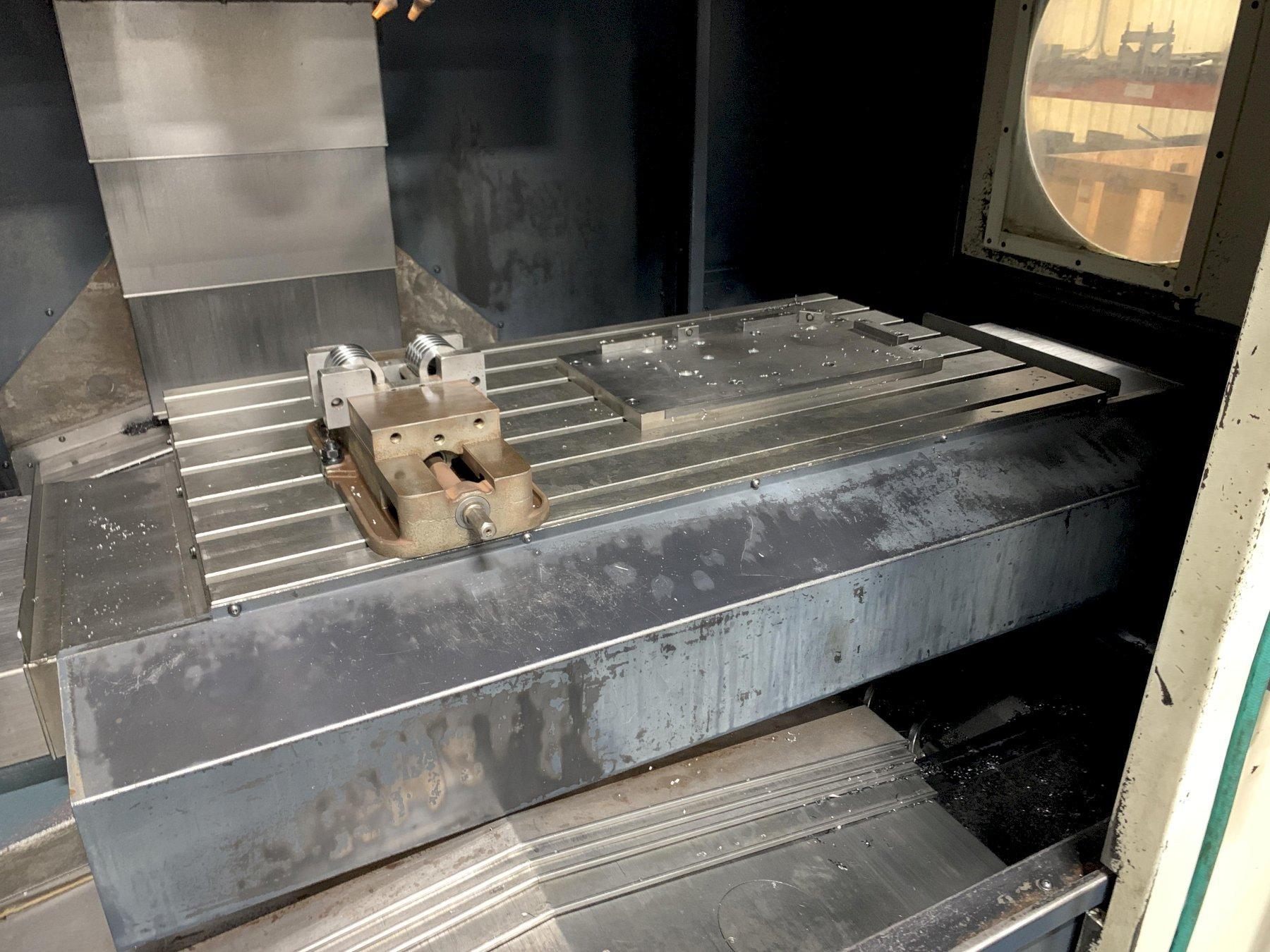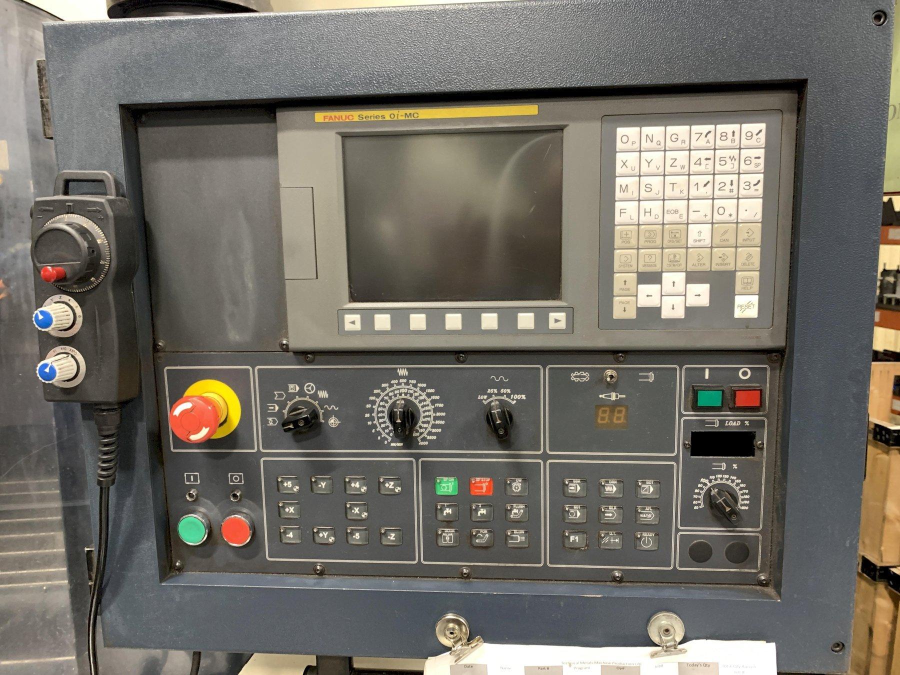 Fanuc 0i-MC CNC Control with 14.5” Monitor, Keypad, Remote MPG, 2-Speed Gear Box, Thru Spindle High Pressure, 24 Position ATC, Coolant, Oil Chiller, Transverse Coolant System with Chip Conveyor.