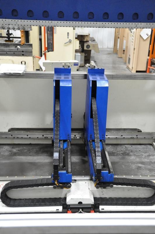 100" X 93 TON TRUMPF HYDRAULIC PRESS BRAKE PRICE: Loaded on Truck, Our Warehouse, York, PA …… $55,500.00 HMC Stock #19120-P Machine Serial No.: 883888 Machine Model No.: Truma Bend V85S New Date: 1999 Rated Tonnage: 93.67 Tons Bed Length: 100" Distance Between Frames: 89" Stroke: 14.37" (365 mm) Maximum Bed-Press Beam Distance: 25" Open Height: 21" Throat: 16" Width of Bed: 4.75" Ram: Y Axis (Y1, Y2) Rapid Speed: 472" Per Minute Operating Speed: 2" to 24" Per Minute Return Speed: 320" Per Minute EQUIPPED WITH: Delem Control 6-Axis Back Gage X1, X2 X Axis Travel: 23.6" Maximum Distance in X: 33.5" Maximum Speed of X Axis: 1200" Per Minute R1, R2 Travel of R Axis: 9.8" Maximum Speed of R Axis: 710" Per Minute Z1, Z2 Maximum Speed of Z Axis: 1900" Per Minute Program Controlled Lower Tool Adjustment (I-Axis) Hardened Lower Tool Holder Self-Centering Upper Tool Holder Power Clamping to Upper Tool (2) Back Gage Finger Support Surfaces Controlled Beam Inclination Crowning (2) Adjustable Sheet Support Arms Light Curtains 15 HP Main Motor Oil Capacity: 53 Gallons Overall Size: 126" LR x 83" FB x 114" H x 22,000 Lbs.