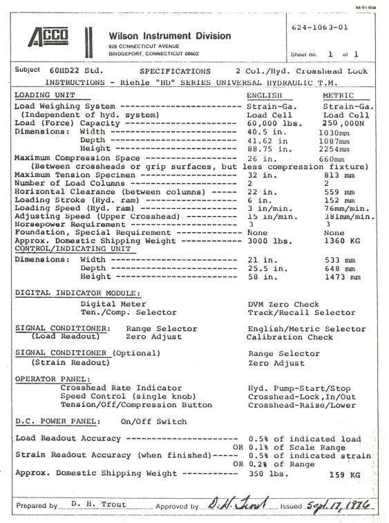 60,000 LBS RIEHLE MODEL #60-HD SERIES UNIVERSAL HYDRAULIC TESTER: STOCK #16726