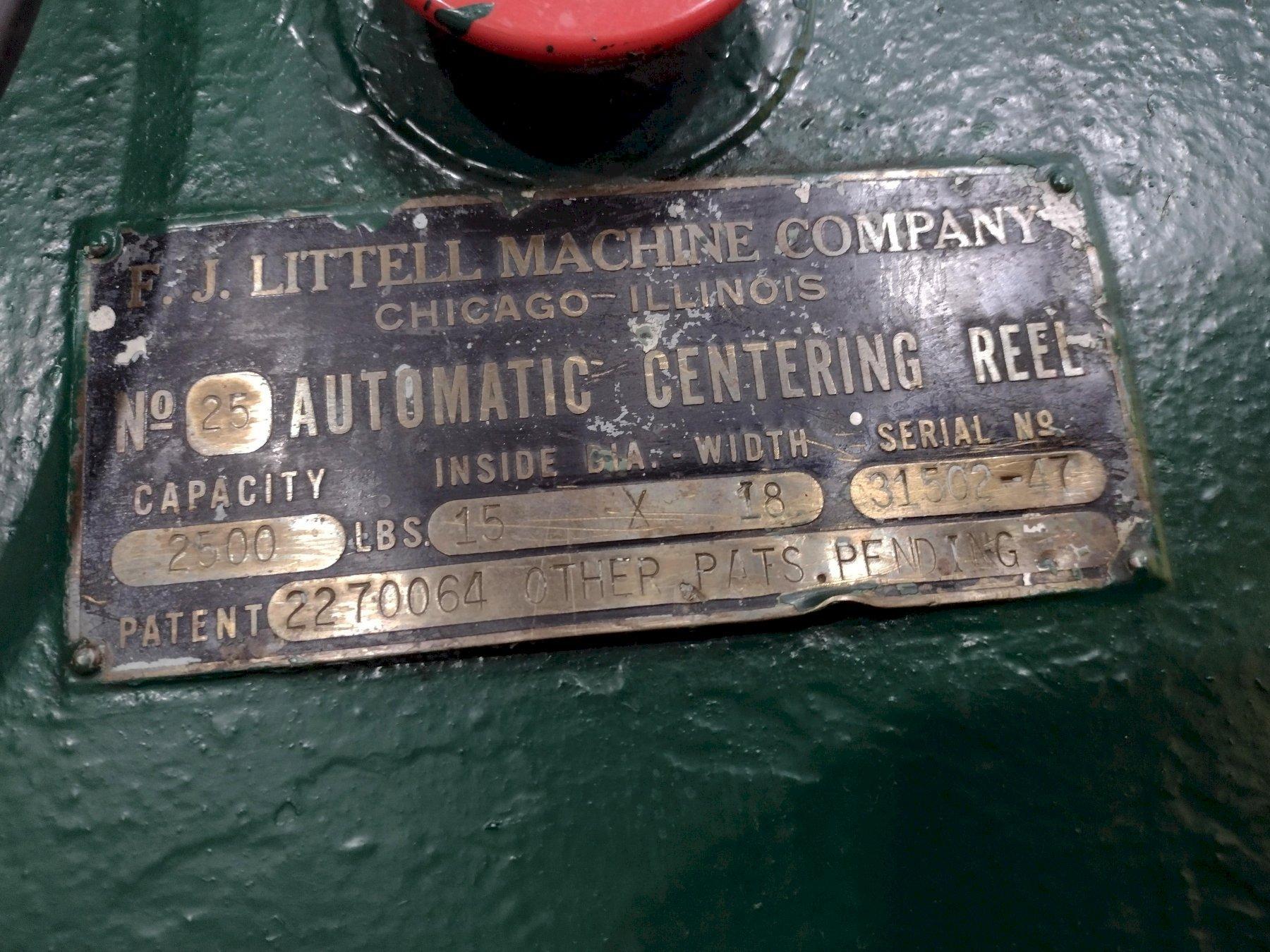 2500 LBS x 18" LITTELL MODEL #25 PULL OFF COIL REEL UNCOILER: STOCK #16503
