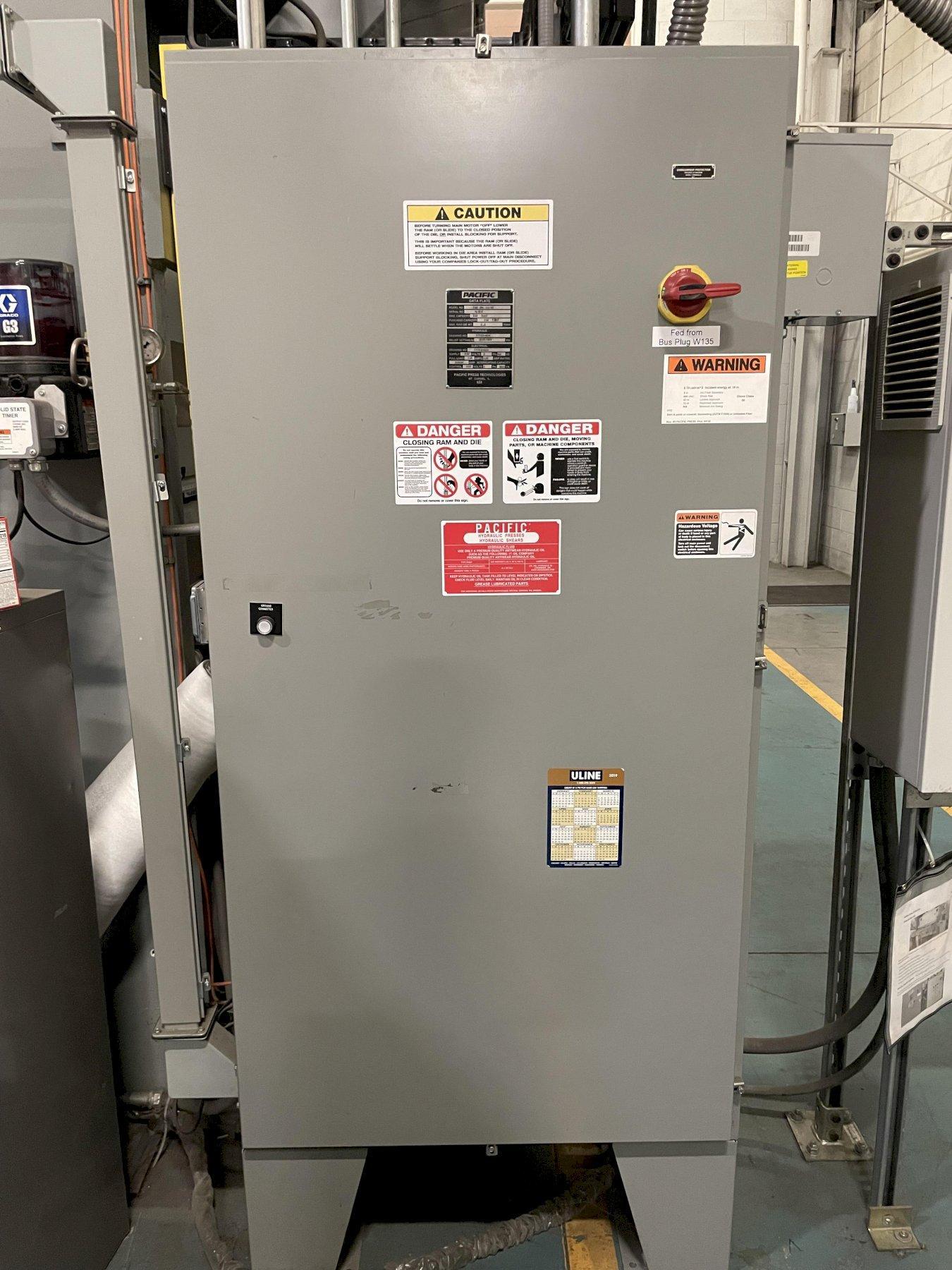 300 TON PACIFIC MODEL #300-OBL-10/60 STRAIGHT SIDE HYDRAULIC PRESS, 12" STROKE: STOCK #16352