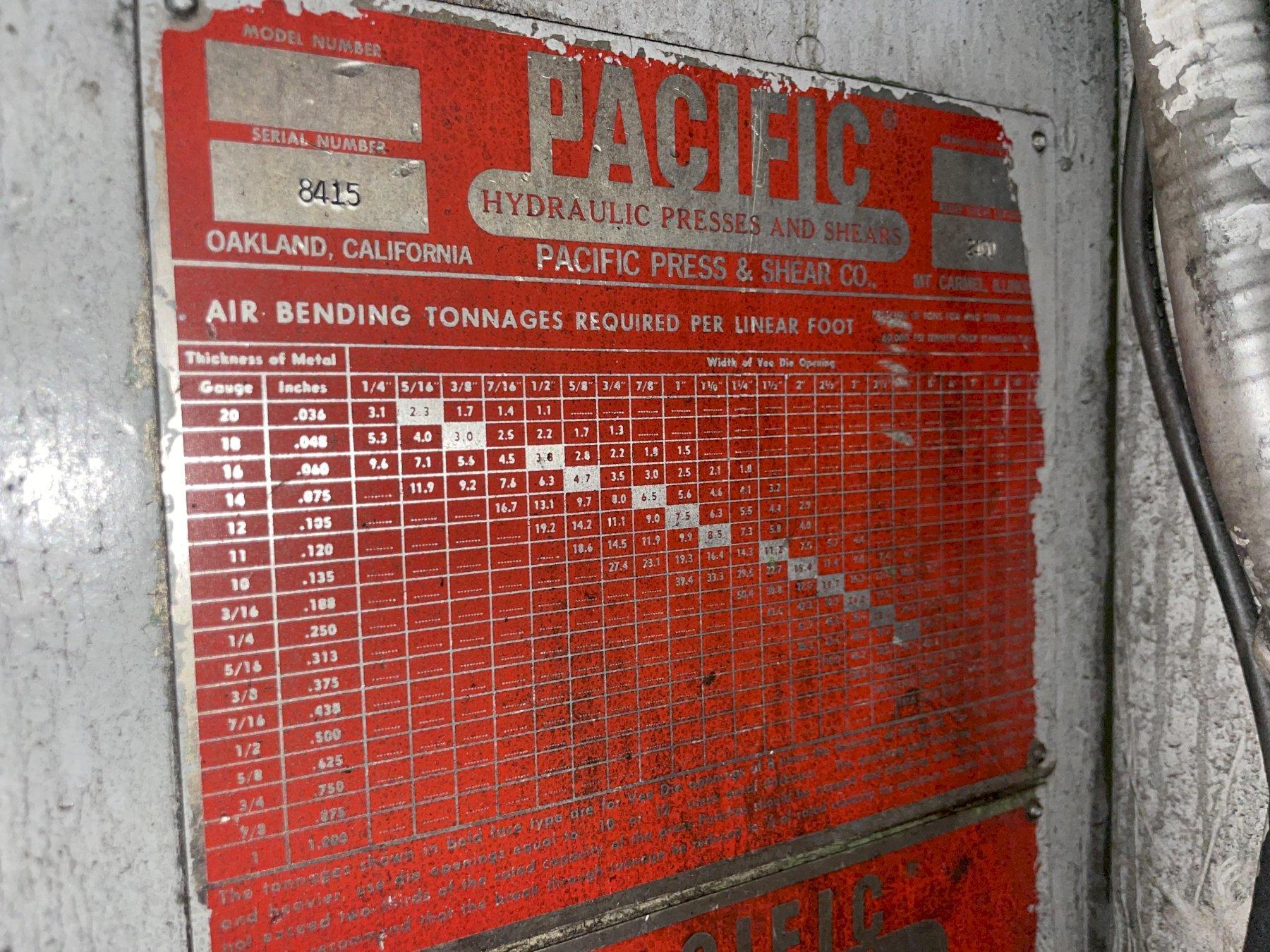 375 TON PACIFIC MODEL #375PF-II PRESSFORMER HYDRAULIC C-FRAME PRESS : STOCK #16259