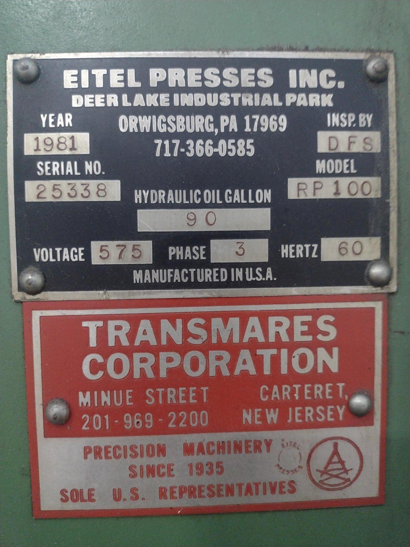 100 TON EITEL MODEL #RP100 HYDRAULIC C-FRAME PRECISION STRAIGHTENING PRESS: YOBRO #16014