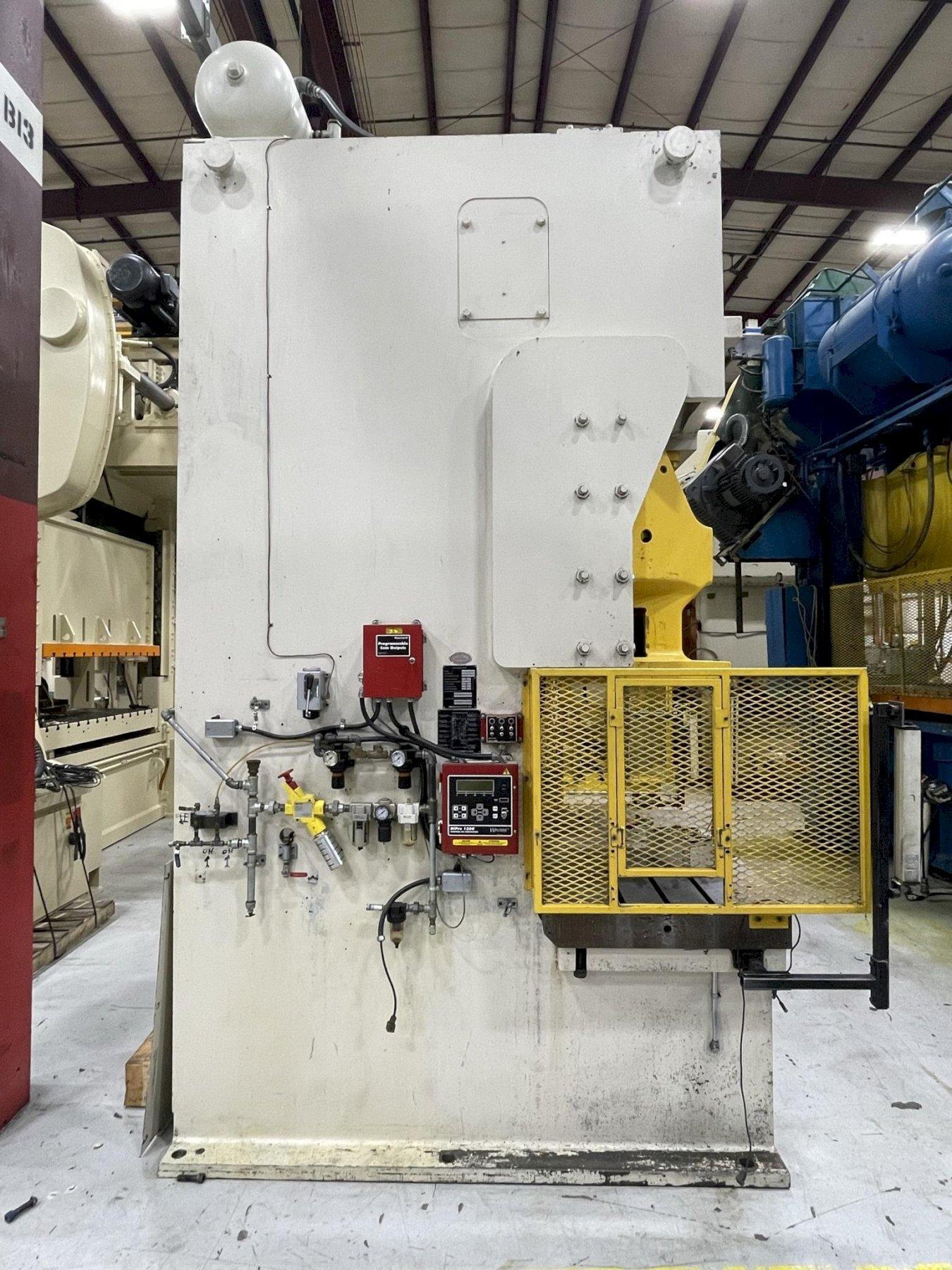 This 200-ton Komatsu Mechanical Metal Stamping Gap Press can be seen under power in the S&G Press Livonia Mi Warehouse!
