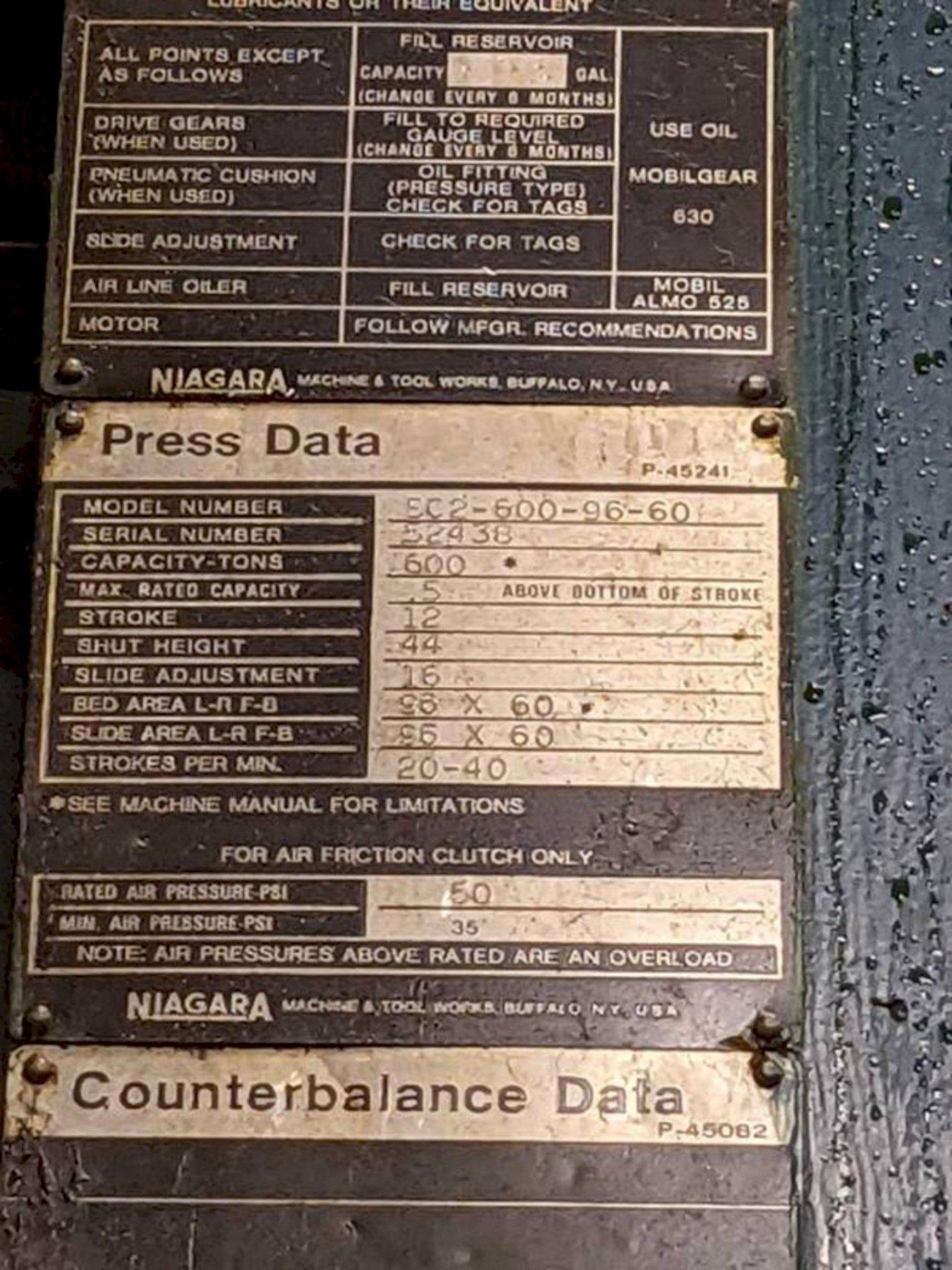 600 ton Niagara SC2-600-96-60 Used Straight Side Mechanical Metal Stamping Press For Sale, Year