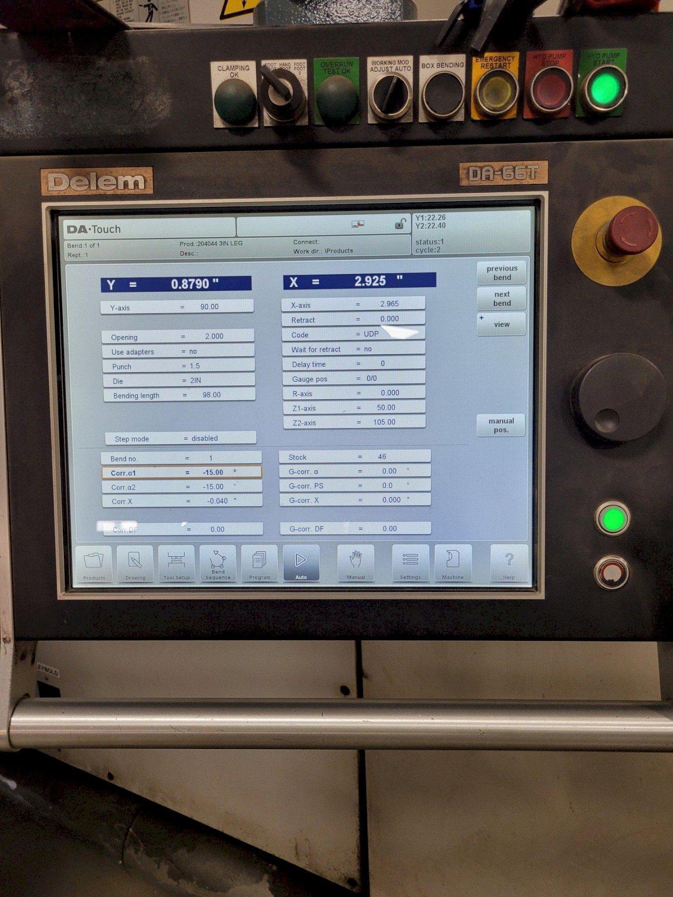 INCLUDES: Delem DA-66T Control, 4-Axis Backgauge, Sheet Followers, Hydraulic Upper and Lower Tooling Clamps