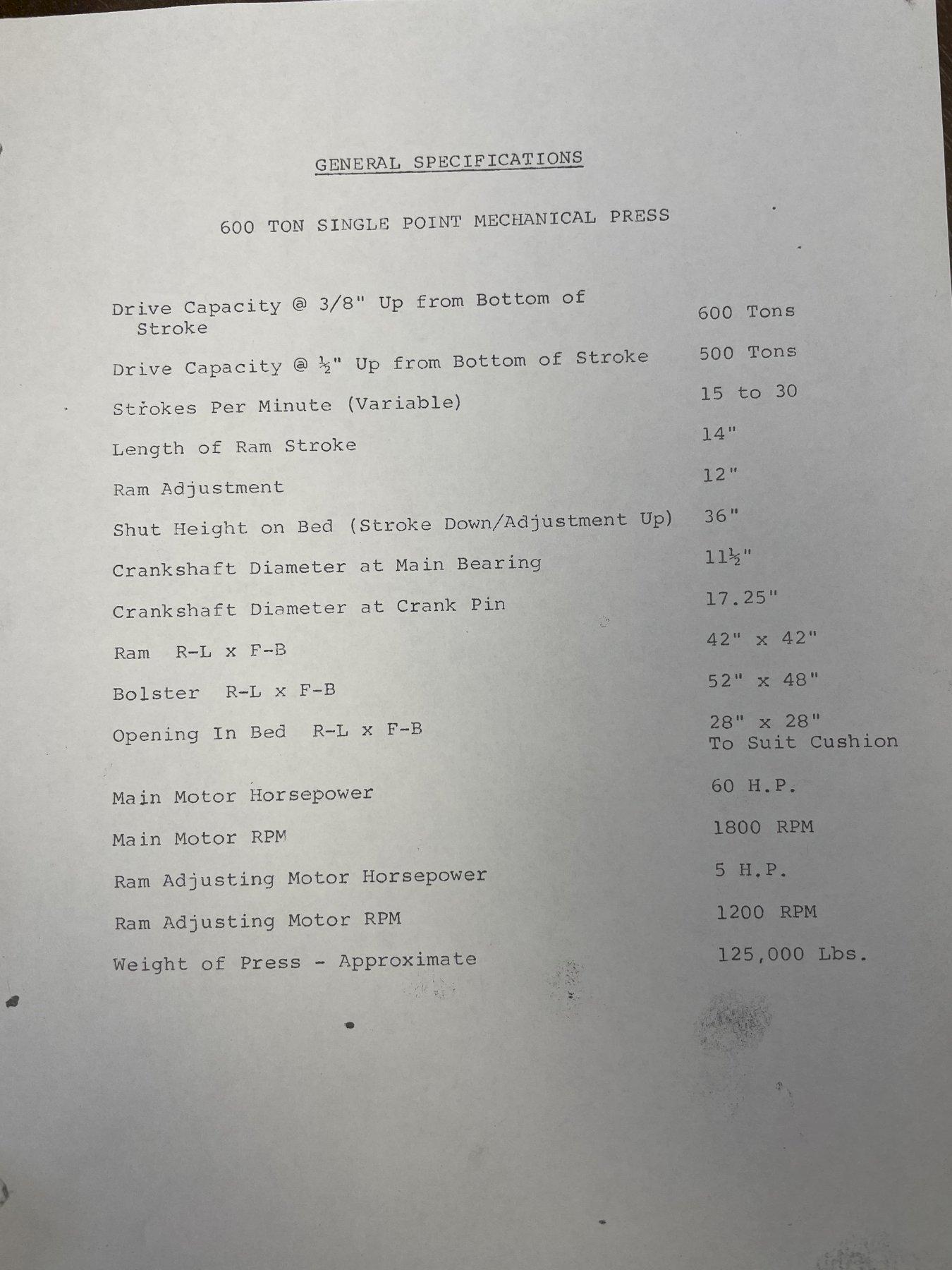 CAPACITY ....... 600 TONS