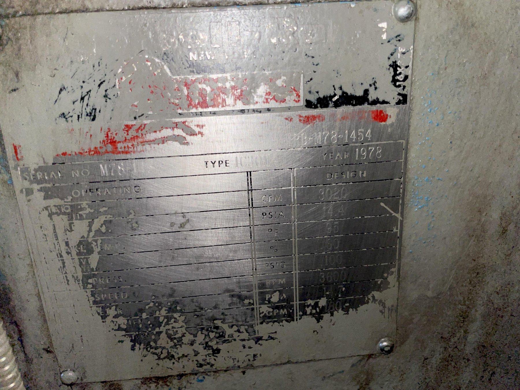 INGERSOLL RAND CENTAC Type 1C30M4 Centrifugal Air Compressor, s/n M78-1454