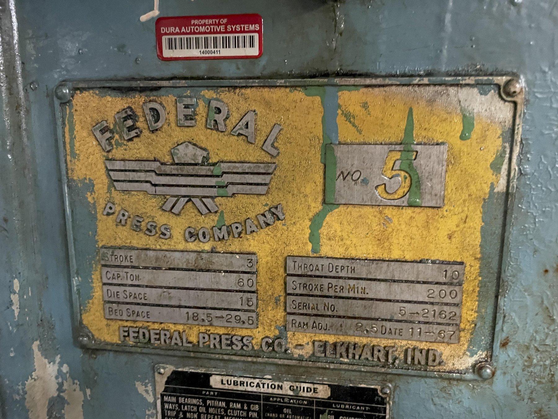 60 TON FEDERAL MODEL #5 OBI PRESS, 3" STROKE: STOCK #15352