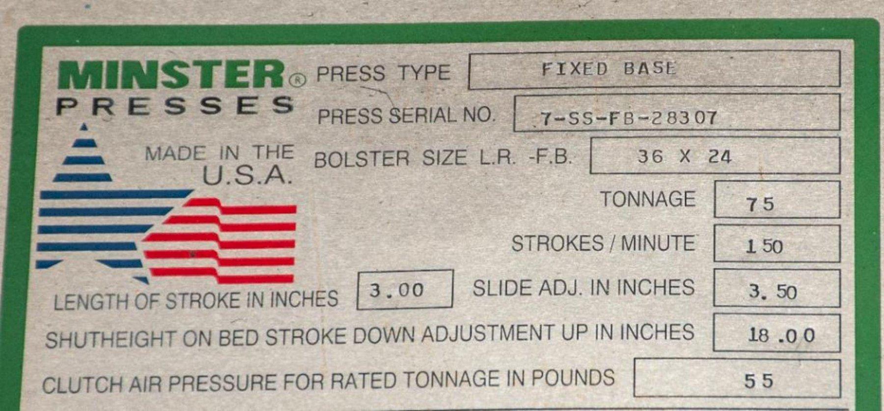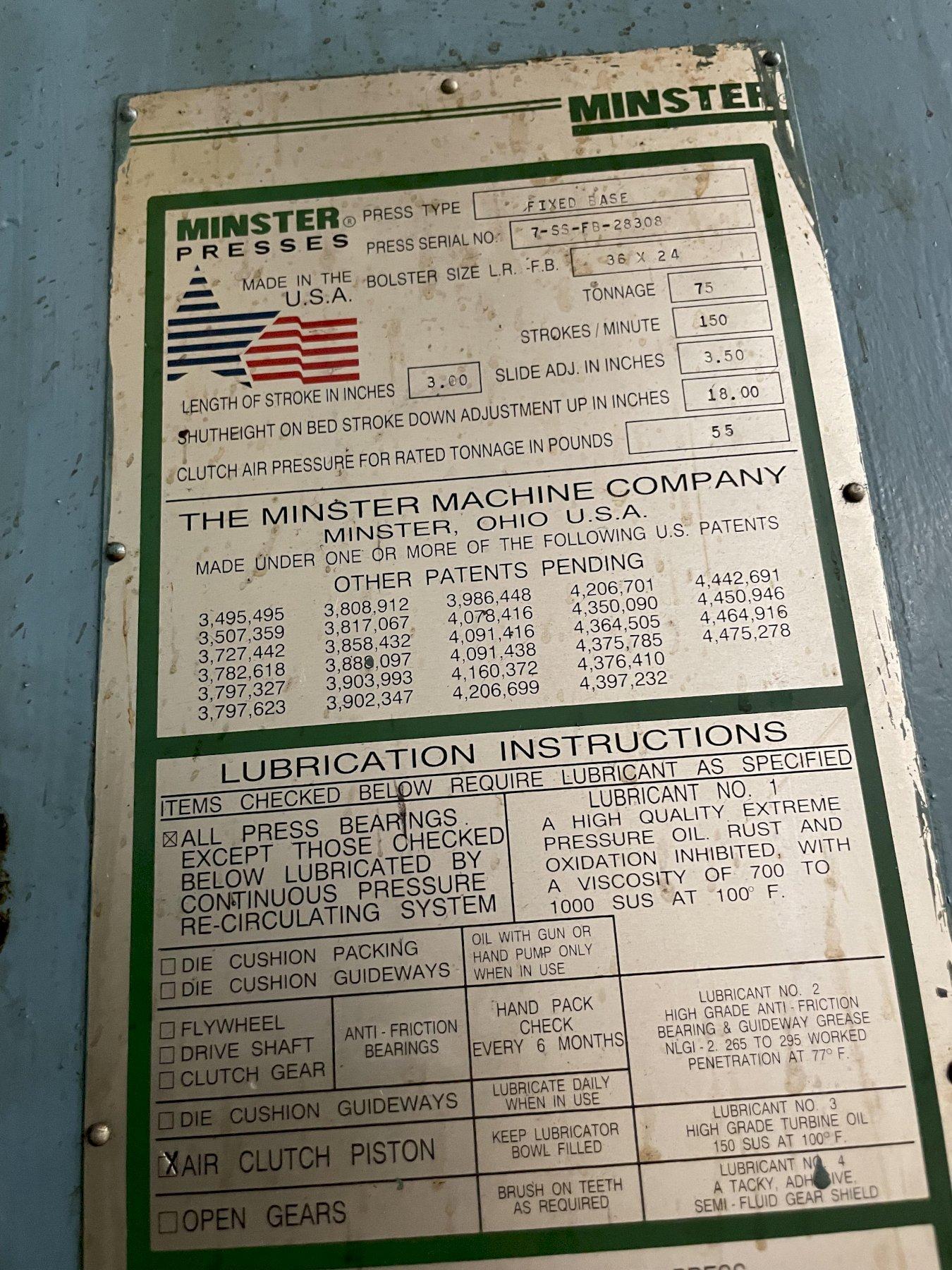 75 TON MINSTER MODEL #7 GAP FRAME PRESS, 3" STROKE: STOCK #15353