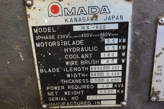 Amada Semi-Automatic, horizontal Column type Bandsaw, 32" x 23" Capacity at 90 degrees, power tilt, power blade guide arm, hydraulic blade tension, Hydraulic hold down, full Preventative maintenance done.