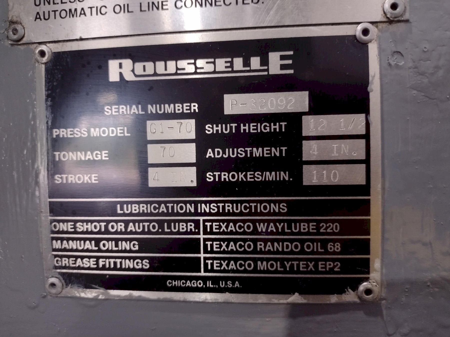 70 TON ROUSSELLE MODEL #G1-70 GAP FRAME STAMPING PRESS 4" STROKE: STOCK #19518