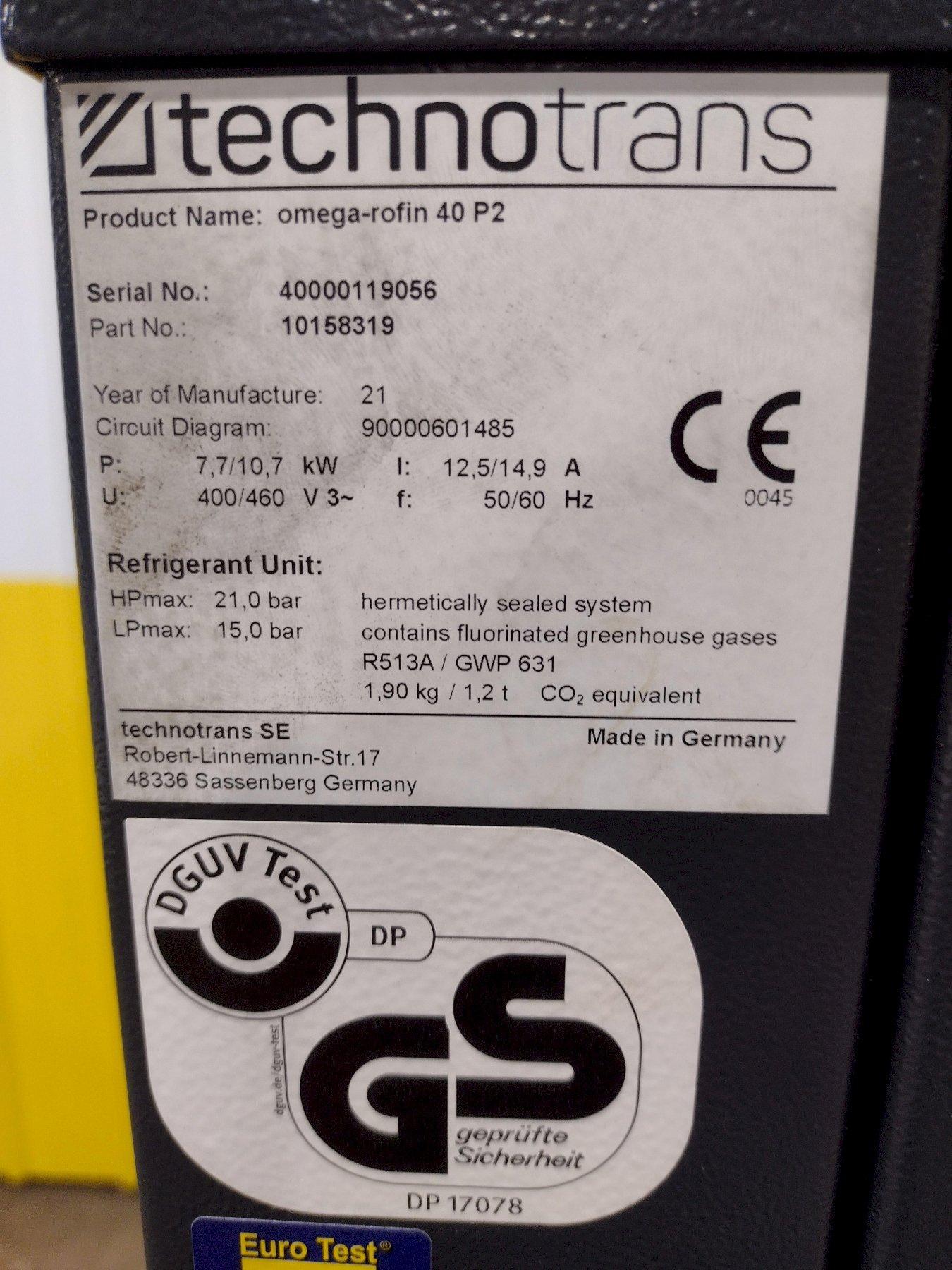 2021 TECHNOTRANS OMEGA 40-P2 CHILLER: STOCK #19378
