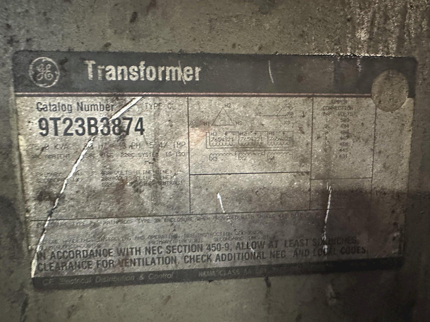 75 KVA GE 480 - 208/120 ELECTRICAL TRANSFORMER: STOCK #18957
