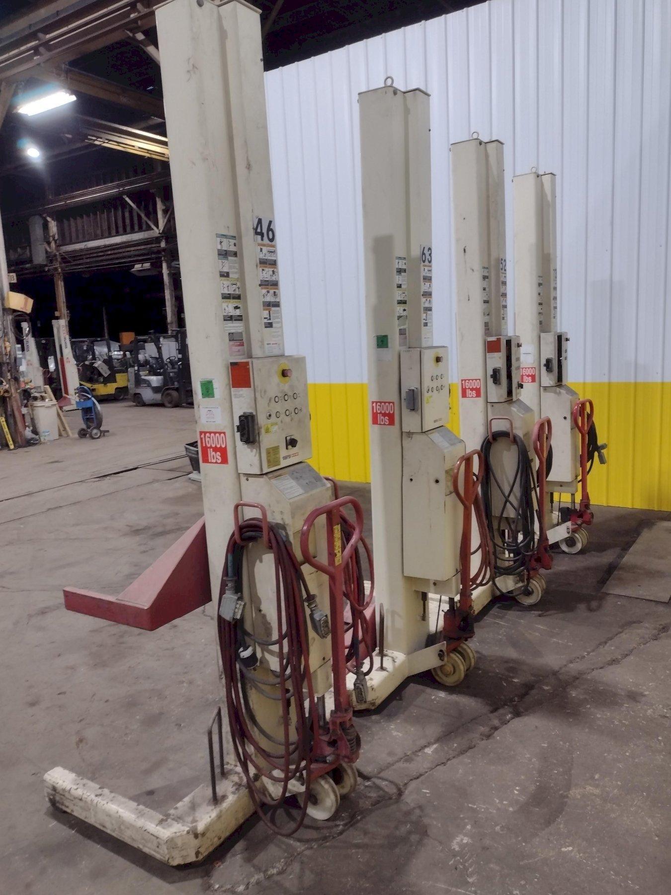 (4) 16,000 LBS STERTIL-KONI MODEL ST-1072 HEAVY DUTY MOBILE COLUMN LIFT JACKS: STOCK #19399