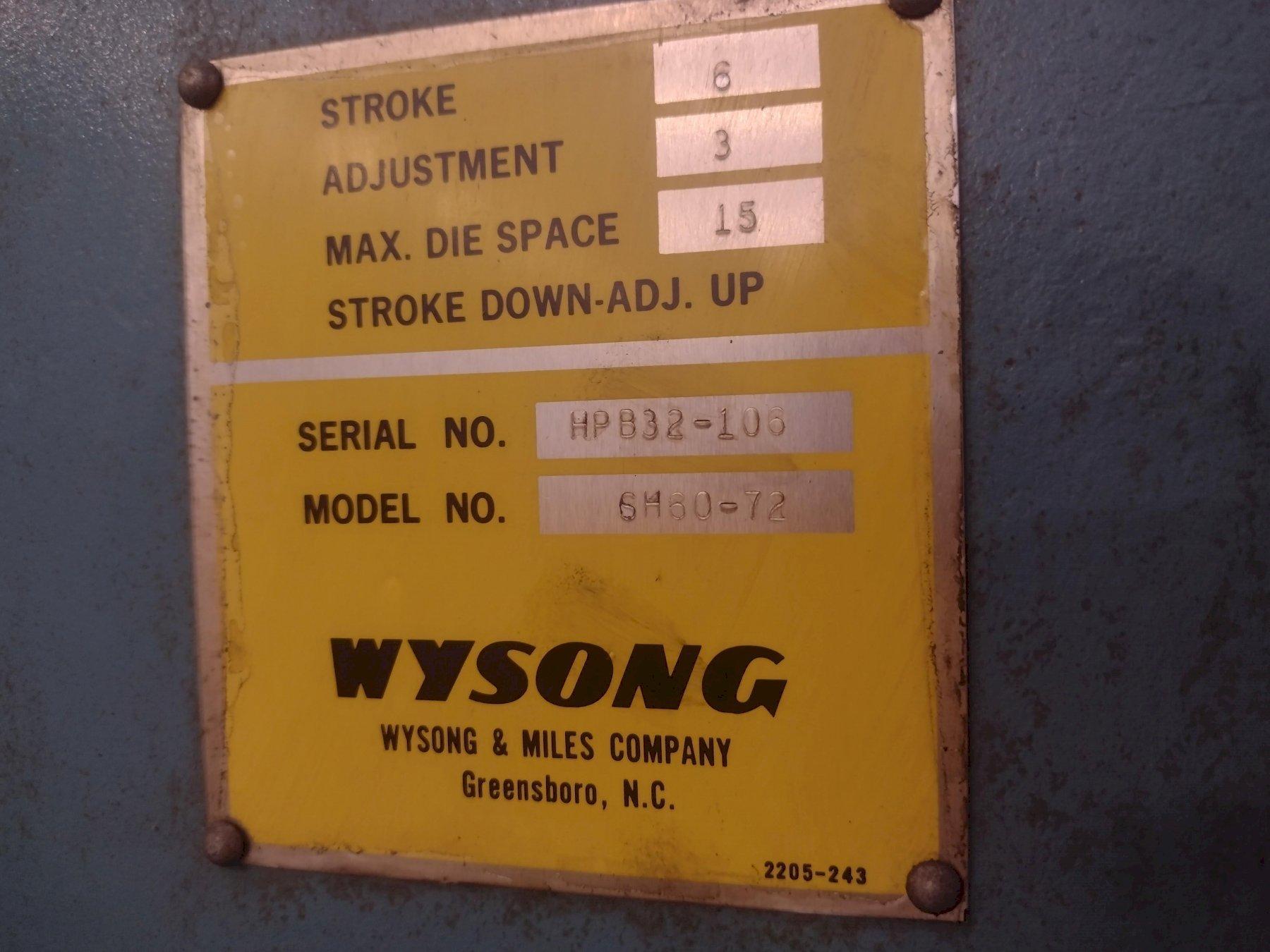 60 TON X 6' WYSONG HYDRAULIC PRESS BRAKE: STOCK #16925