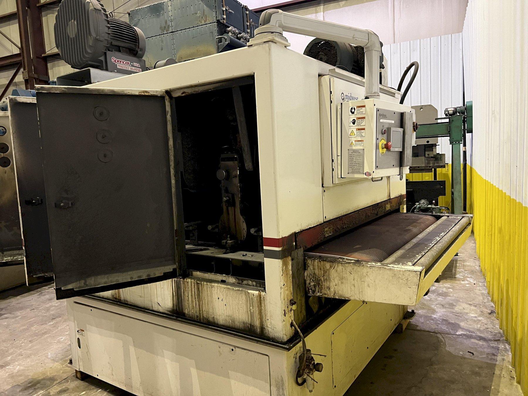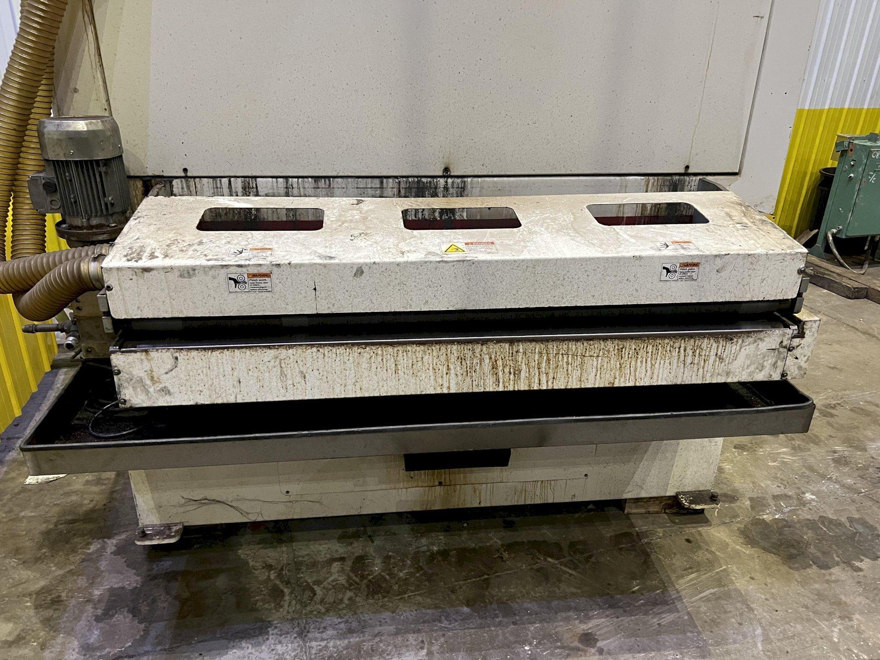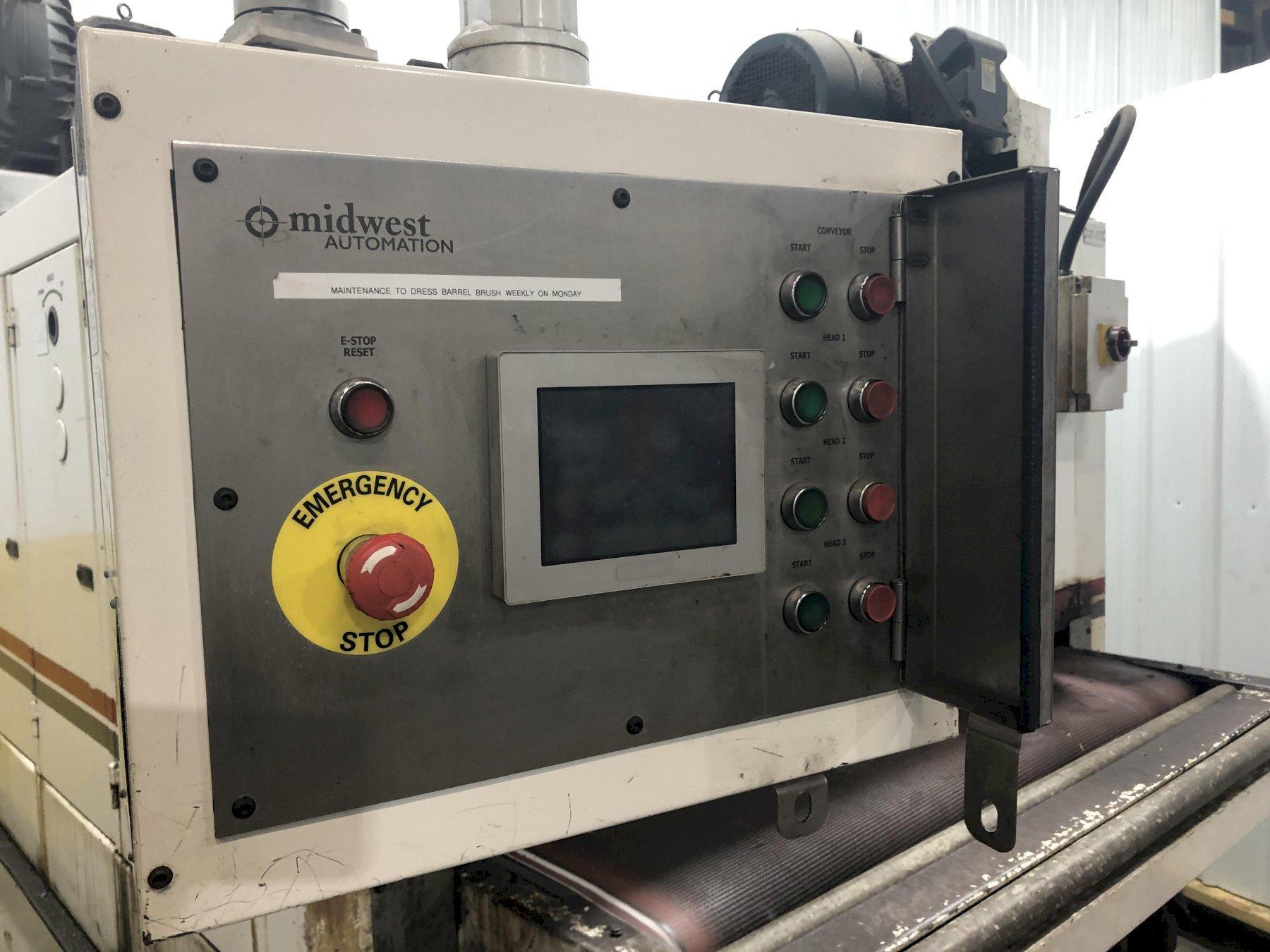 63" MIDWEST AUTOMATION MODEL #N3-6375 3 HEAD WET TYPE BELT DEBURRING GRINDER MACHINE: STOCK 1822