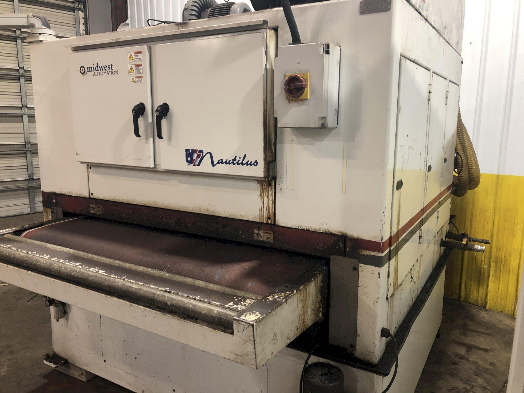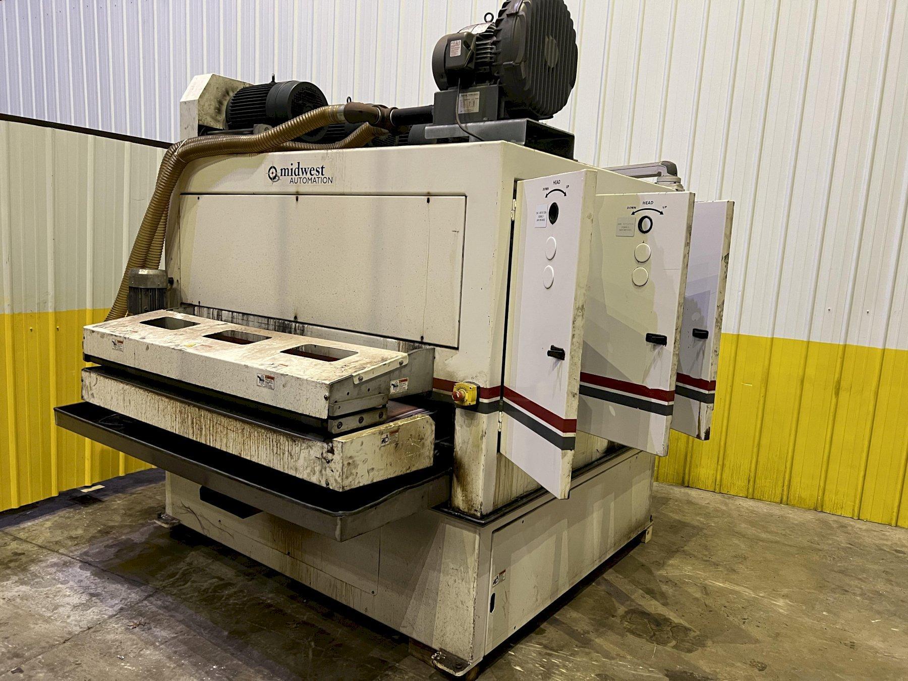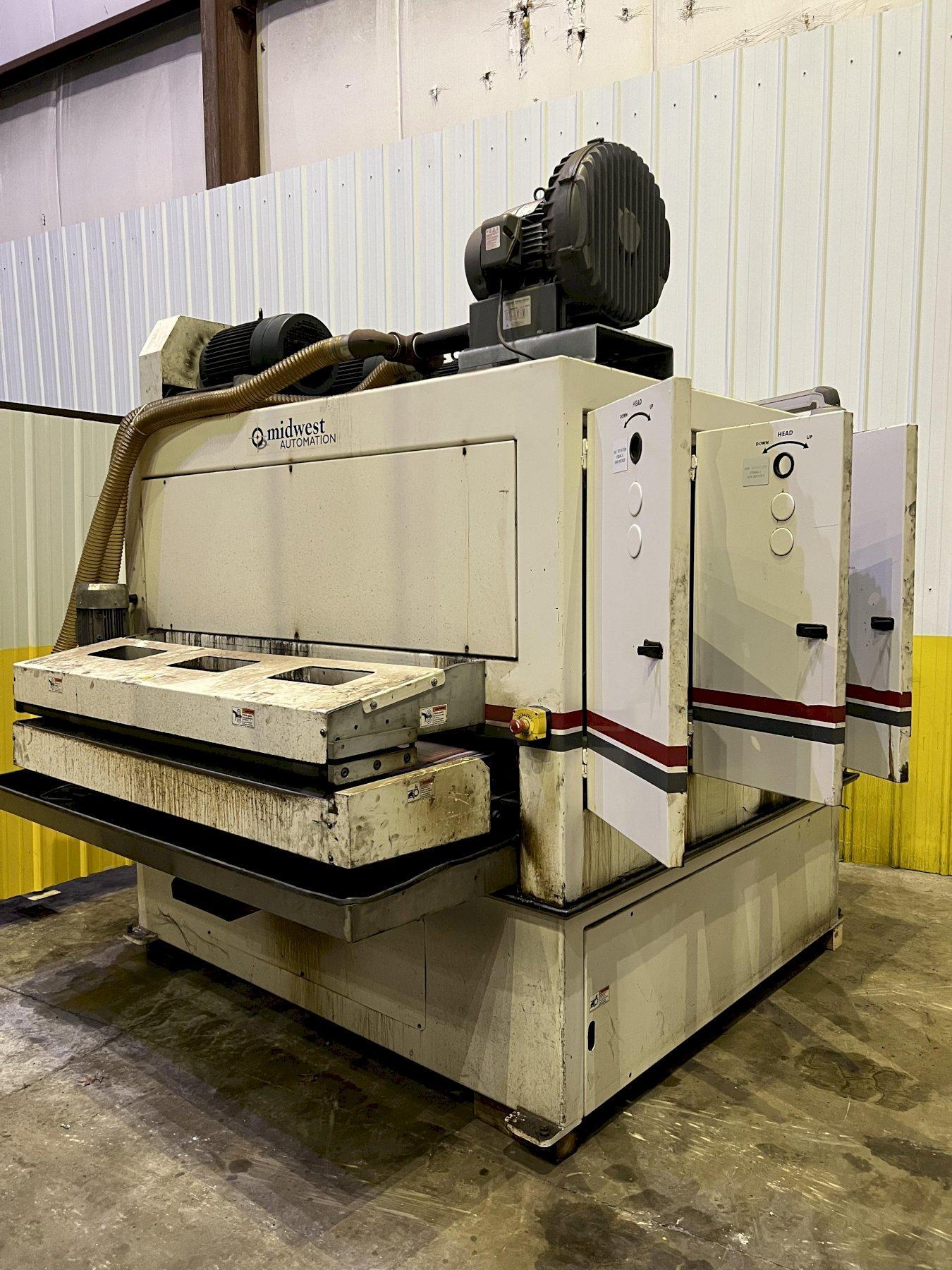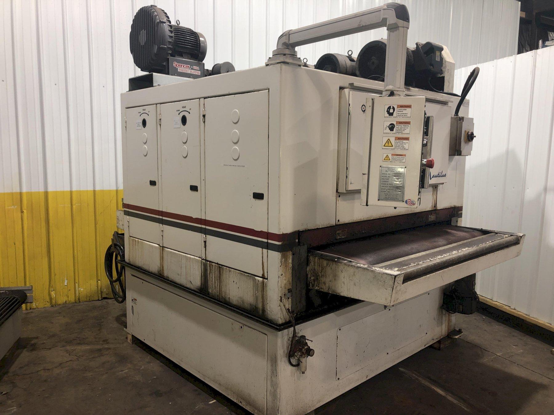 63" MIDWEST AUTOMATION MODEL #N3-6375 3 HEAD WET TYPE BELT DEBURRING GRINDER MACHINE: STOCK 1822